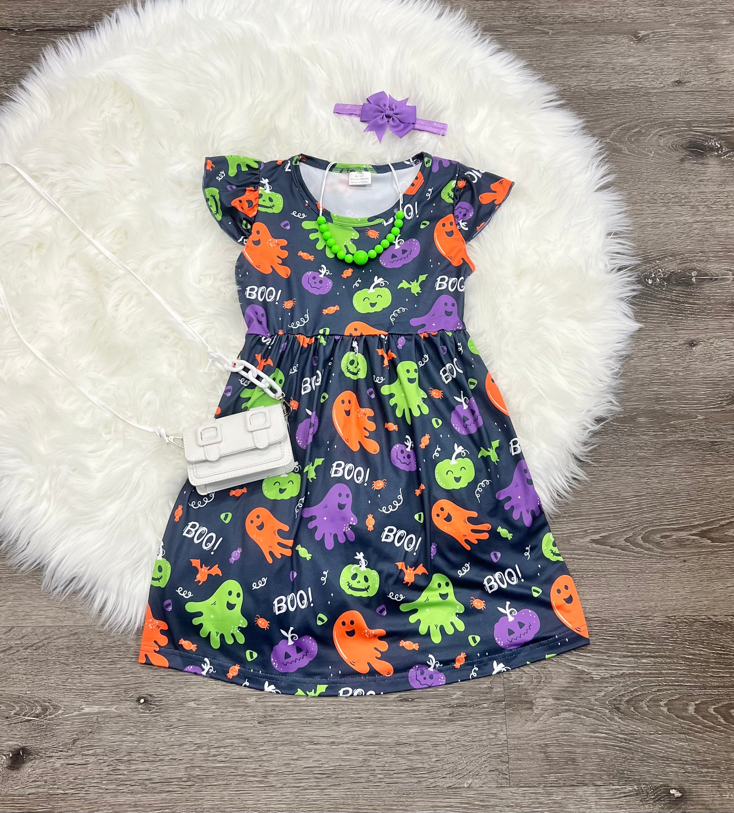 Fun Halloween themed dress. 95% Cotton 5% Spandex