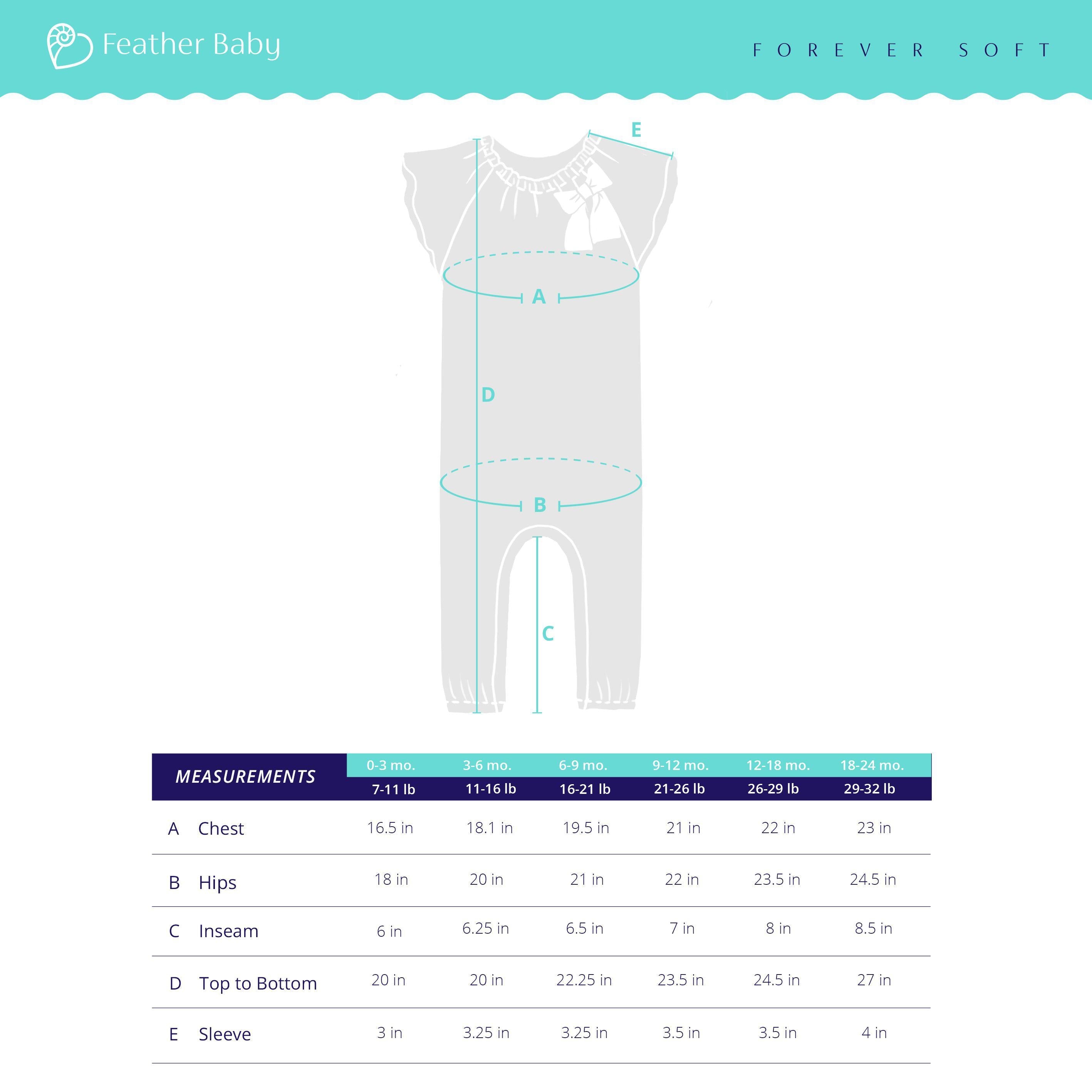 Our short-sleeved Bow Romper is a Feather Baby classic: fluttery sleeves and an elastic collar that easily opens wide to slip over the baby's whole body. You'll love how easy it is to change the baby. Snaps are along the inseam.
