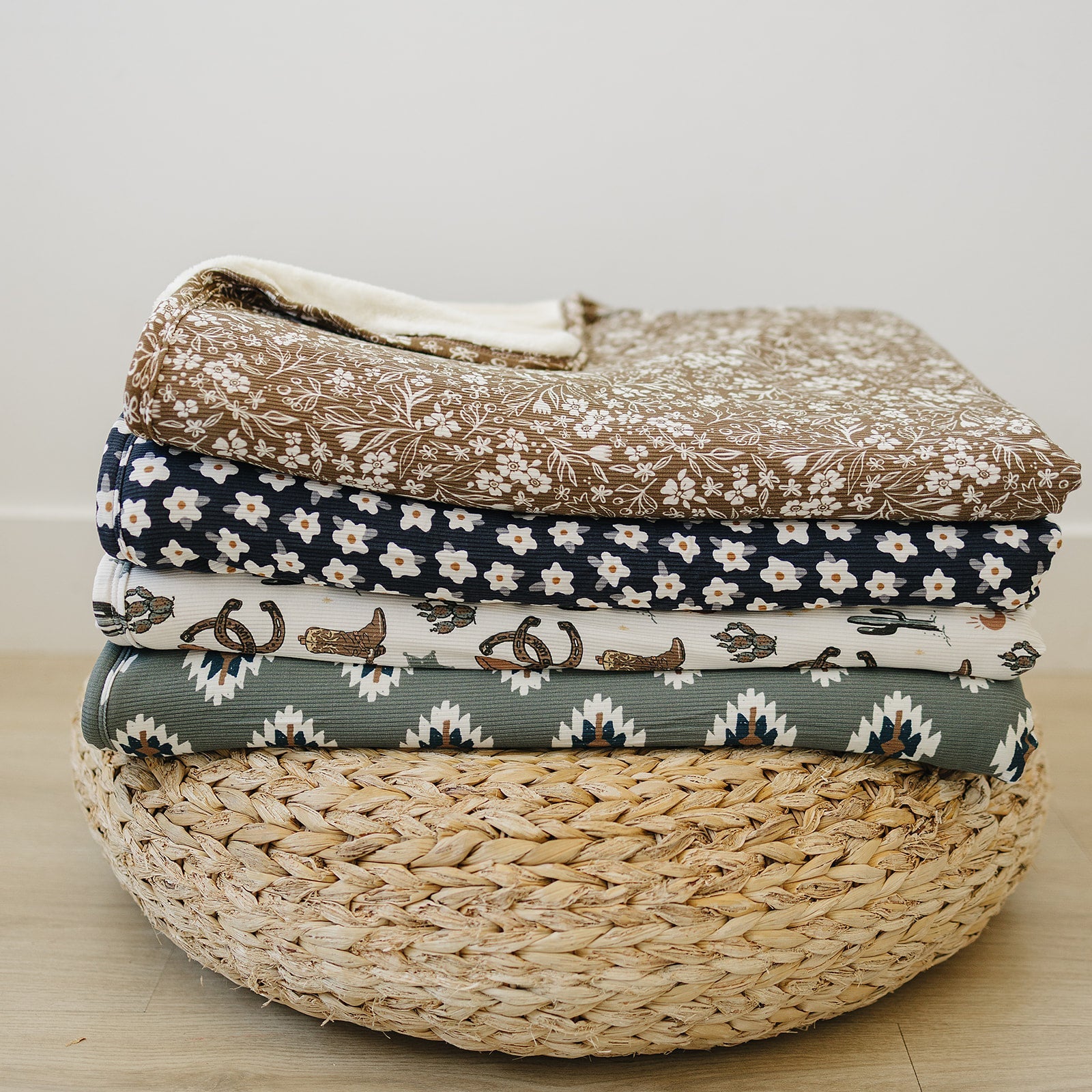 Introducing our Light Green Checkered Bamboo Fleece Quilt, featuring a stylish rust checkered print. One side is crafted from soft, breathable bamboo material, while the other side boasts cozy fleece for ultimate warmth and comfort. Perfect for adding a touch of style and coziness to your baby's nursery. Shop now for the ideal blend of elegance and comfort!
