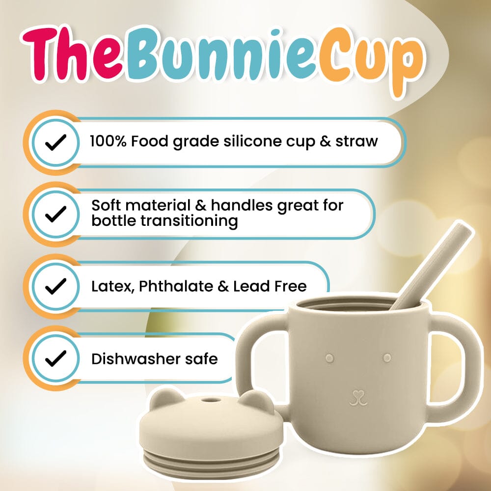 Our adorable BunnieCup is a unique silicone-made training cup for toddlers and babies as young as 6 months.