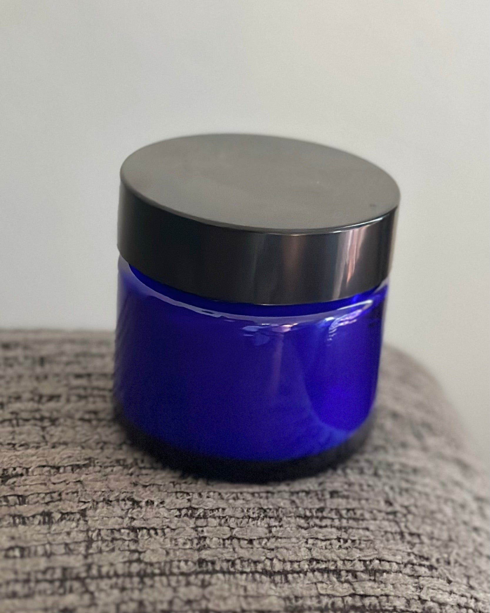 Product comes in a cobalt blue glass container. Please recycle or repurpose!
