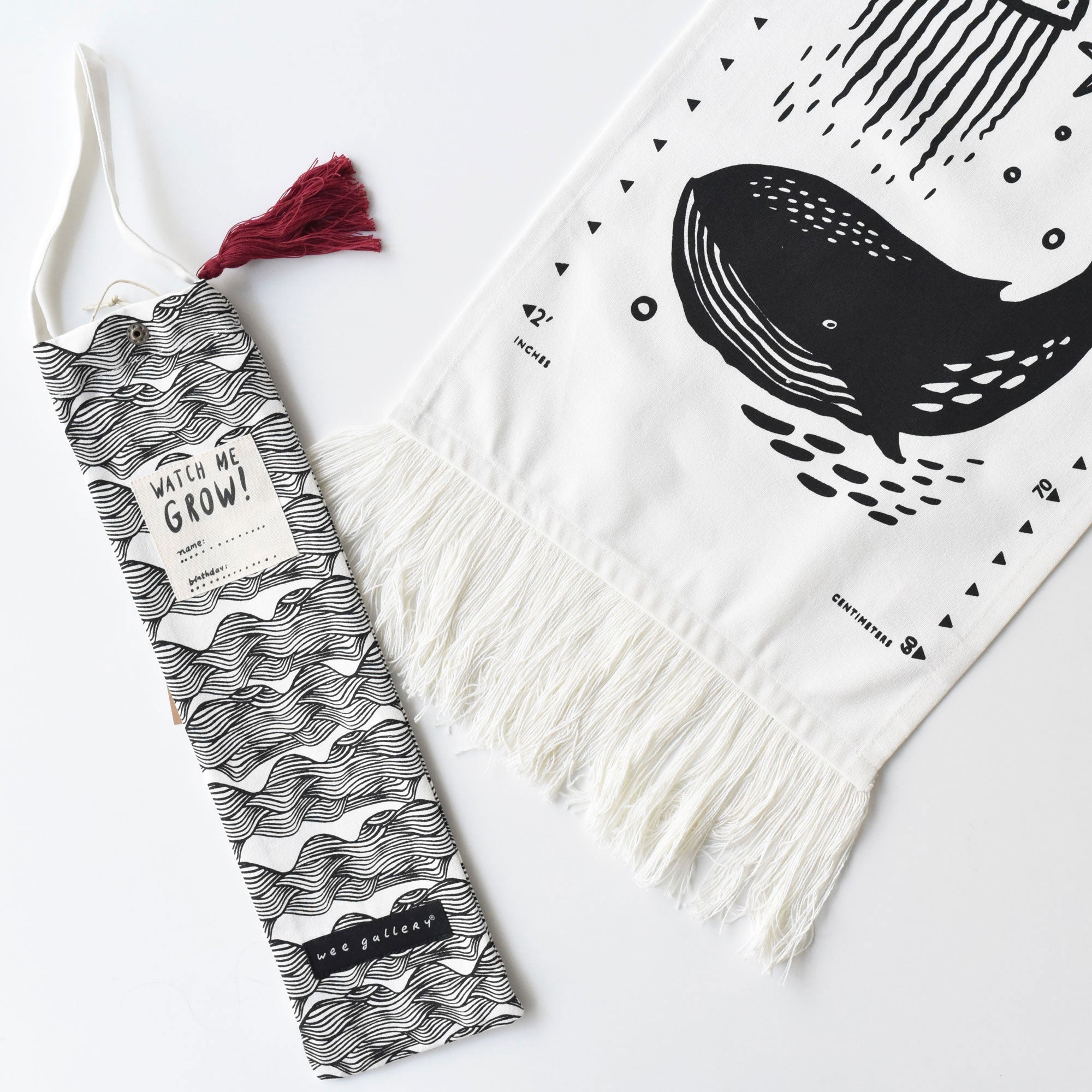 This organic cotton fabric Growth Chart features sweet ocean animals that smile as your little one grows. The natural materials and lovely illustrations make it perfect wall tapestry accent to a stylish nursery, bedroom, or play room decor. Easily mount on a hook or nail, the twine makes it easy to move when needed.