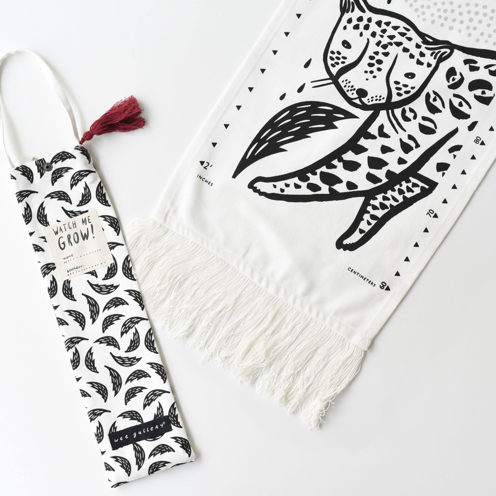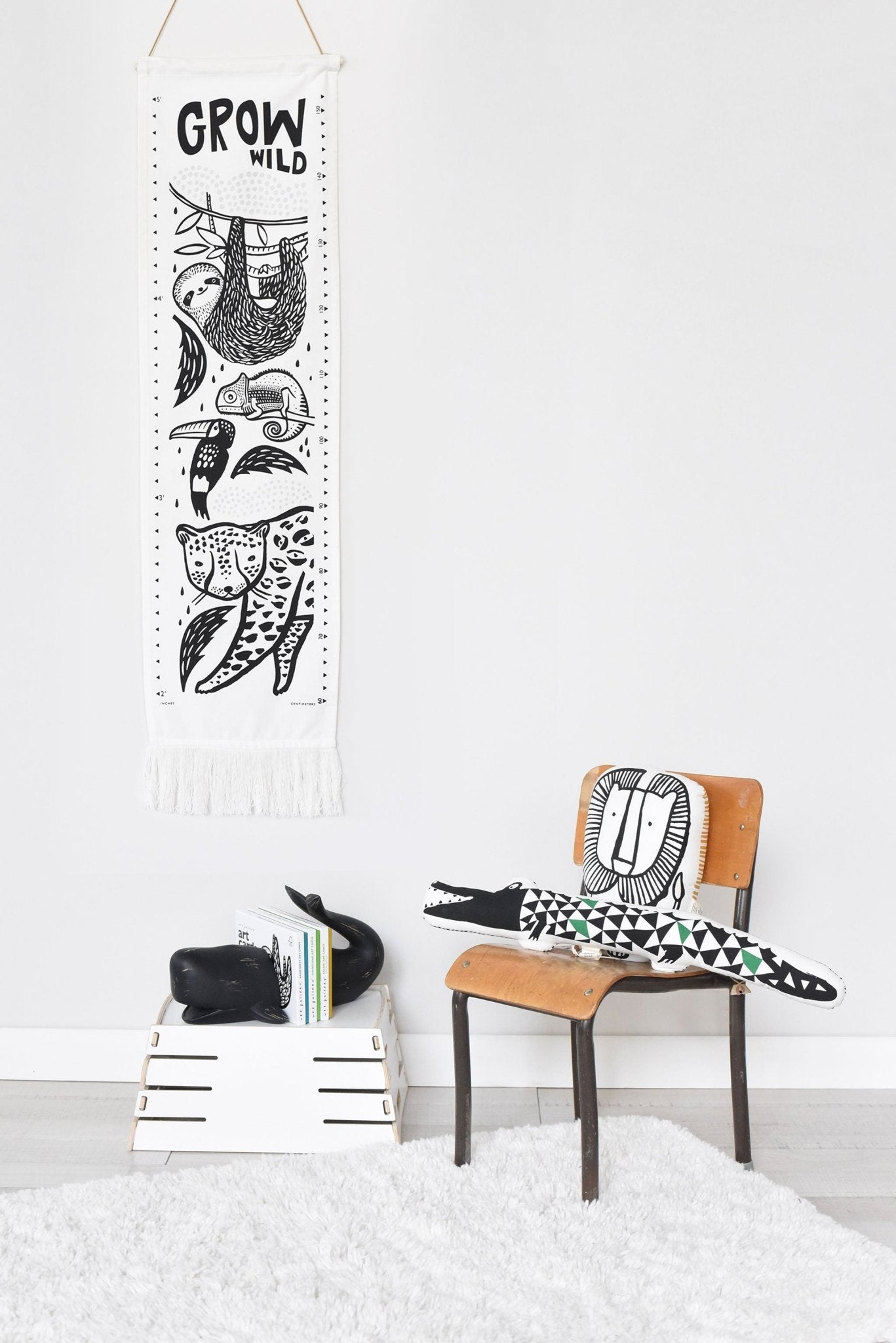 This organic cotton fabric Growth Chart features wild jungle animals that smile as your little one grows. The natural materials and lovely illustrations make it perfect wall tapestry accent to a stylish nursery, bedroom, or play room decor. Easily mount on a hook or nail, the twine makes it easy to move when needed.