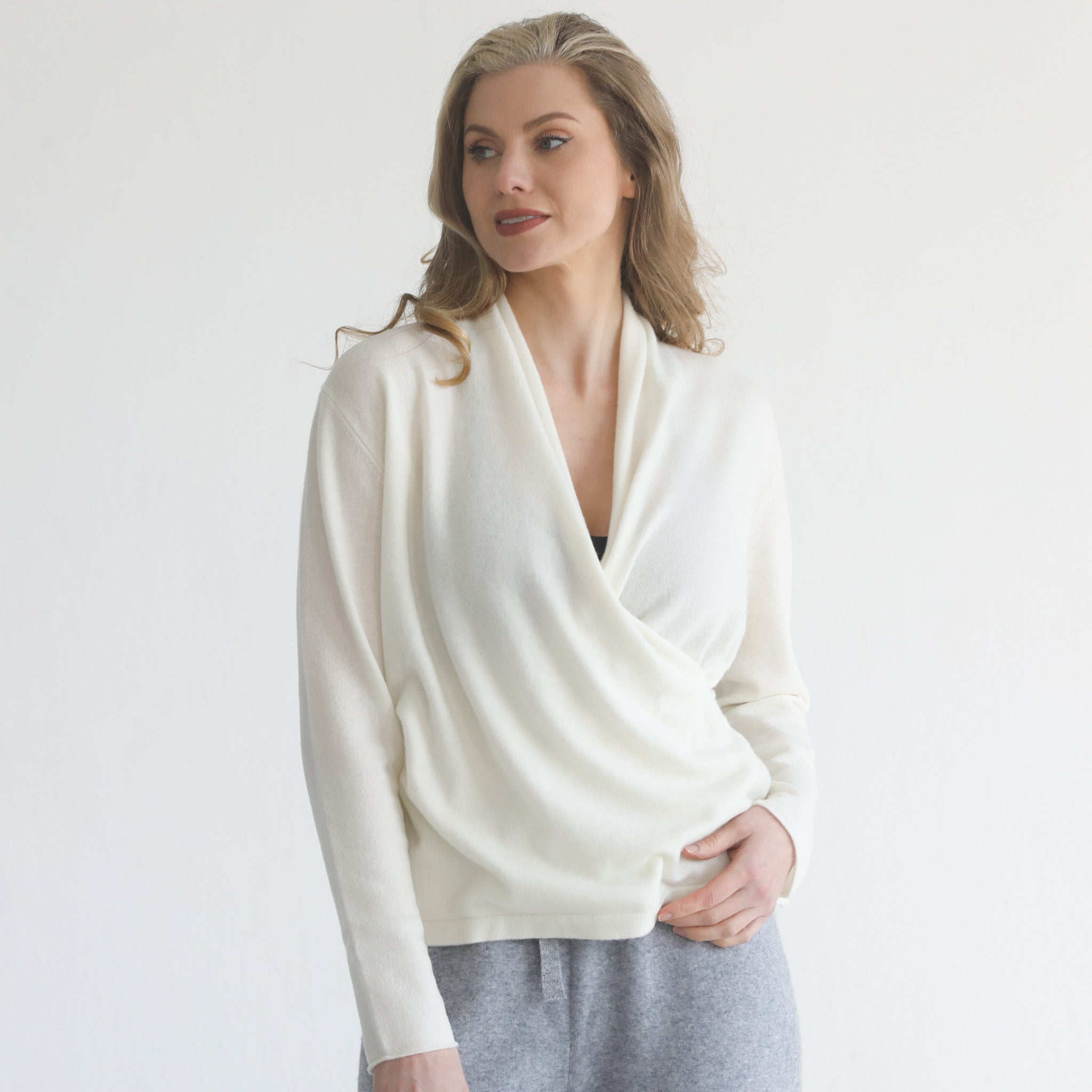 - Cashmere Wrap Sweater (Blanc)