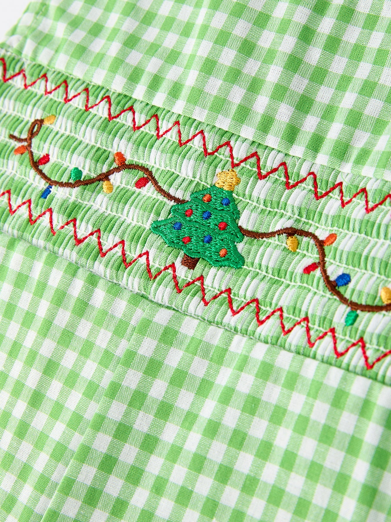 Dress your little one in festive charm with the Christmas Tree Smocked Baby Romper featuring a classic green plaid pattern. This adorable romper combines timeless holiday style with soft, comfortable fabric, ensuring your baby stays cozy during celebrations. The delicate smocking detail adds a touch of handcrafted elegance, making it perfect for photos and special moments. Celebrate the season in style and comfort with this beautiful baby romper that captures the magic of Christmas.