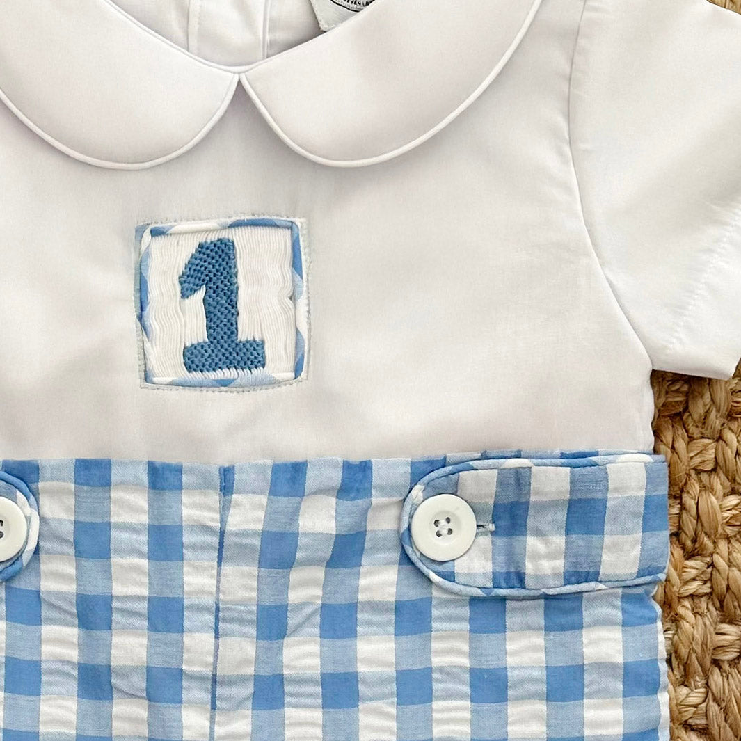 Celebrate the big "1" in style with our Collared First Birthday Jon Jon. Perfect for pictures and partying. Make every birthday count!