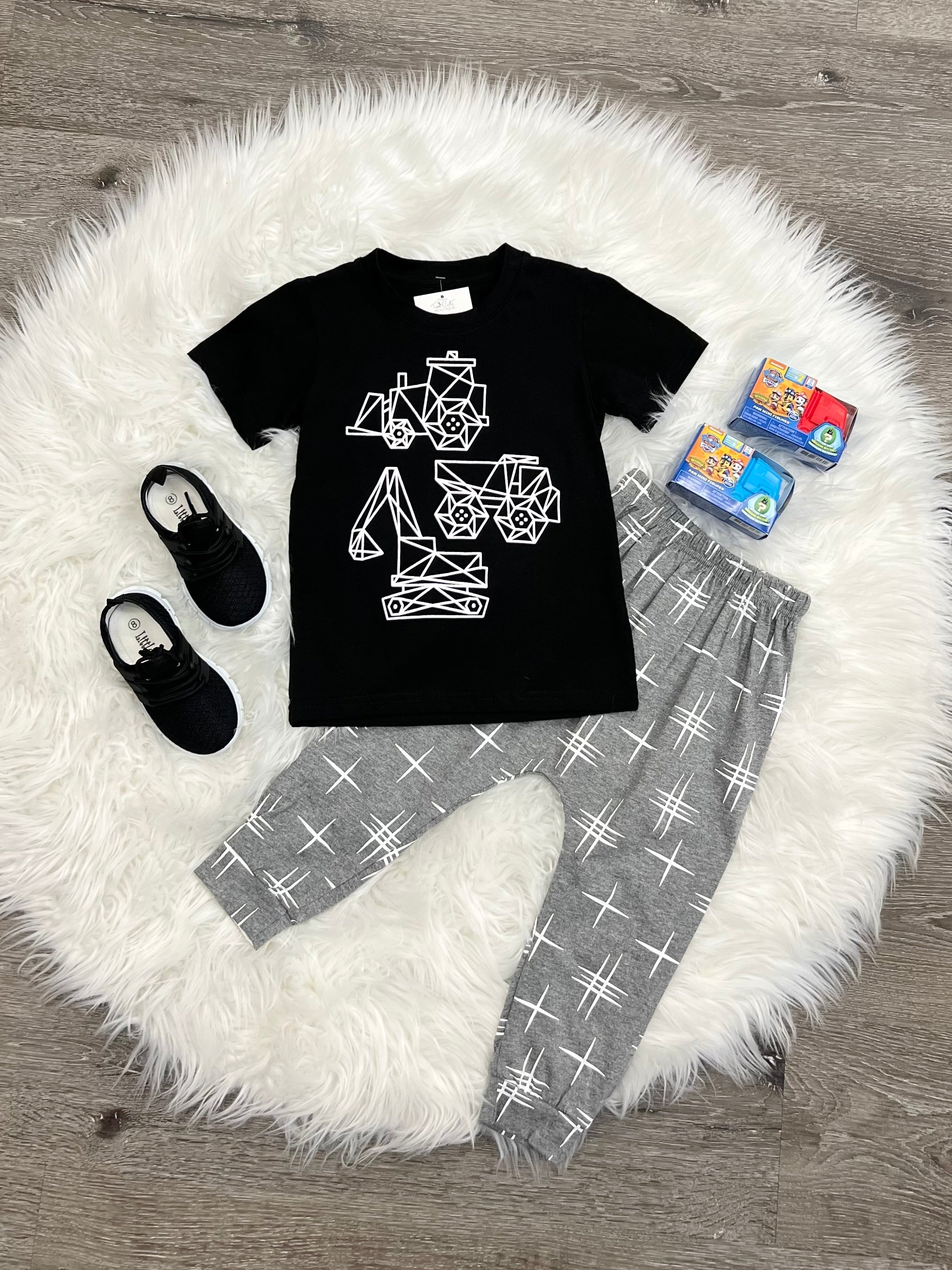 This top features fun connect the dots type designs of vehicles! Such a basic design but so so so cute!