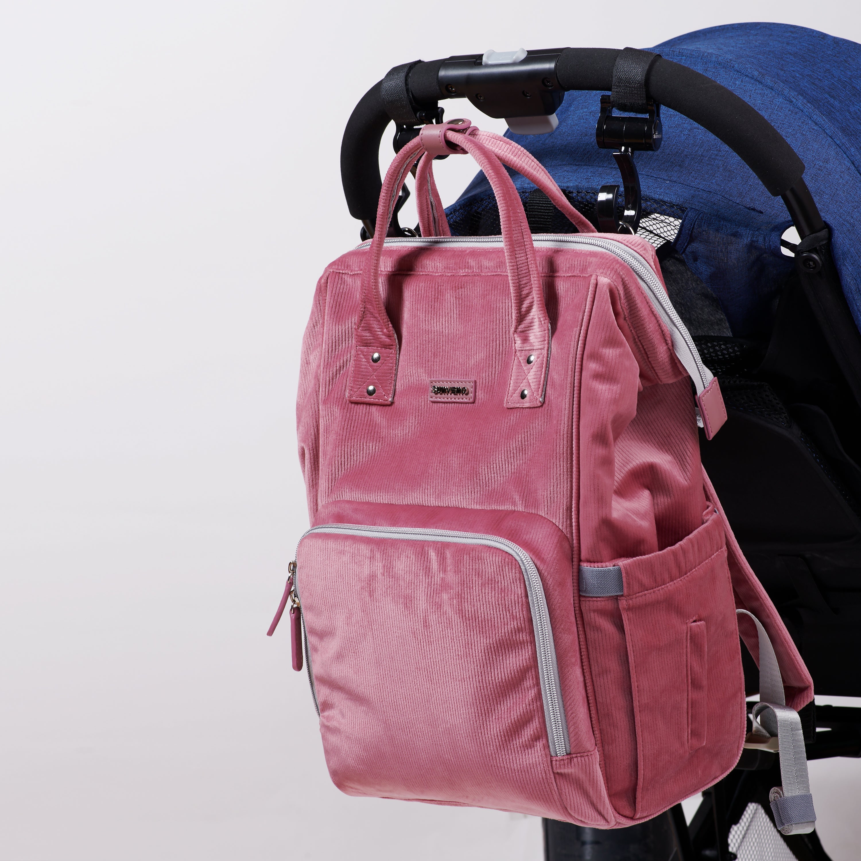 Explore the ultimate Corduroy Diaper Backpack, perfect for modern mothers. With 13 pockets, insulated bottle storage, and water-resistant Corduroy fabric, this backpack is both stylish and functional. It helps keep your baby essentials organized and easily accessible for everyday use. The D-rings make it effortless to attach to your stroller, while the adjustable, padded straps ensure maximum comfort. Stay organized and trendy with this essential diaper backpack.
