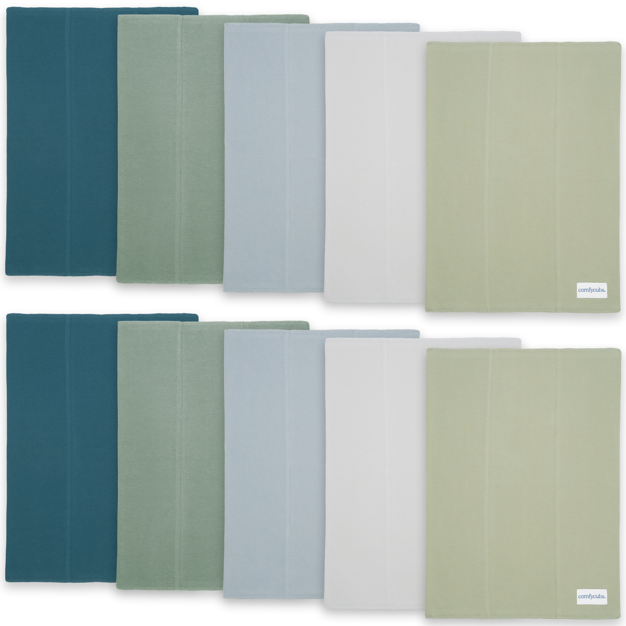 PACK INFORMATION – each pack contains 6 x or 10x burp cloths, measuring 16" x 12" inches each. The cloths are 100% Cotton and have 2 layers of extra absorbent, soft material