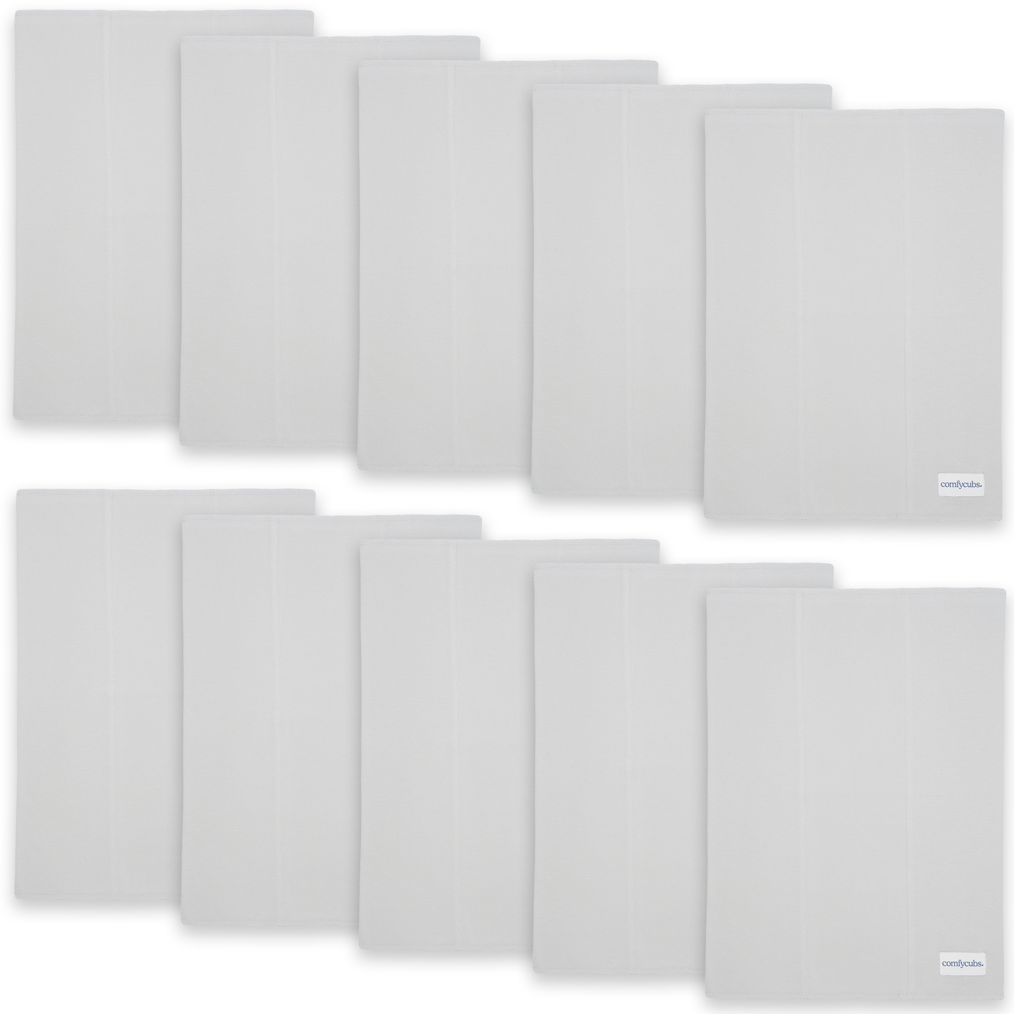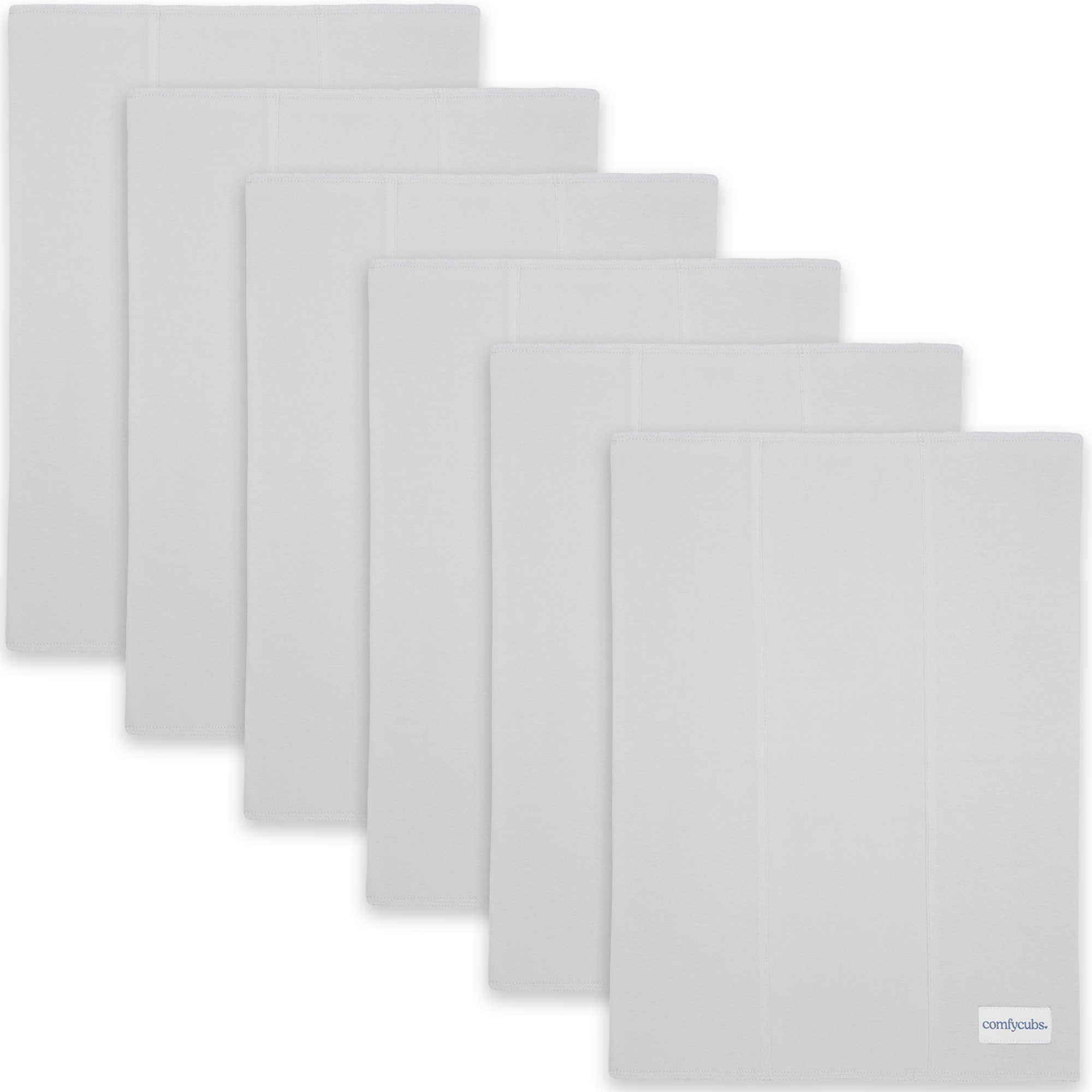 PACK INFORMATION – each pack contains 6 x or 10x burp cloths, measuring 16" x 12" inches each. The cloths are 100% Cotton and have 2 layers of extra absorbent, soft material