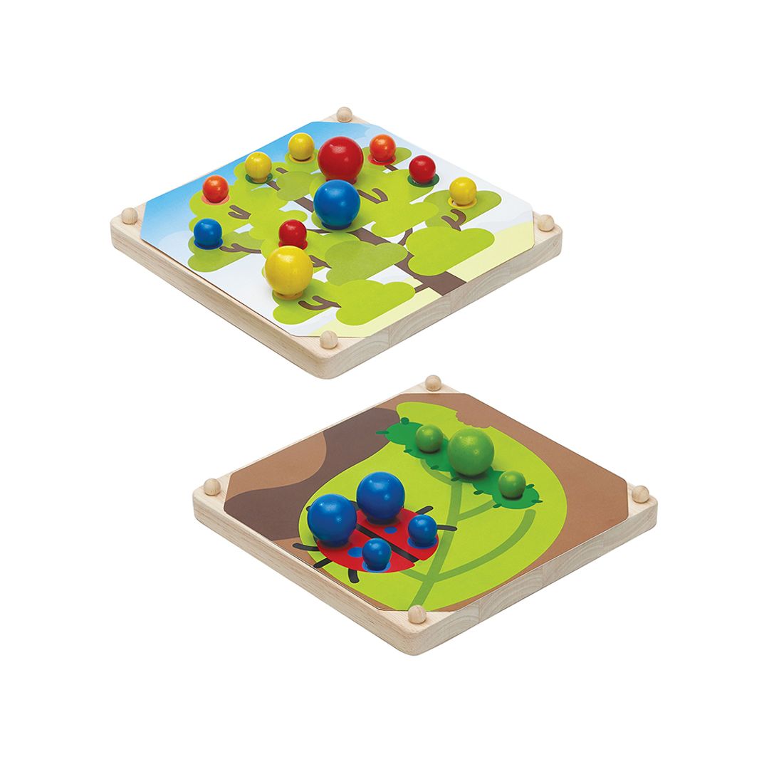 - Comes complete with a wooden board, 3 double-sided cards with 6 different scenes, and 50 colorful pegs of 2 different sizes