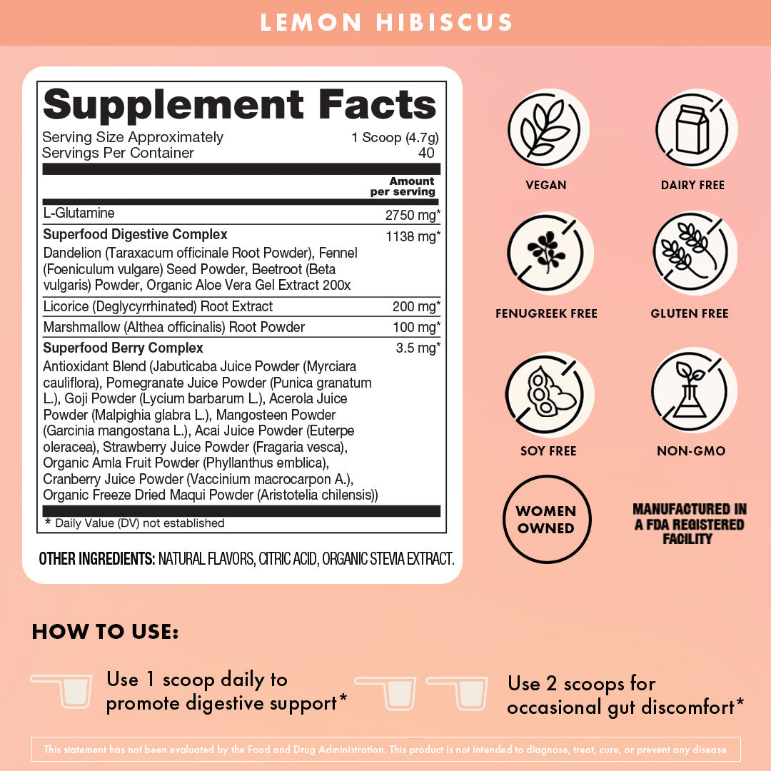 Ease bloating and water retention with L-Glutamine and calming herbs. Ideal for pregnancy, postpartum, monthly cycle and after overindulging in meals, promoting a healthier and balanced gut system every day.