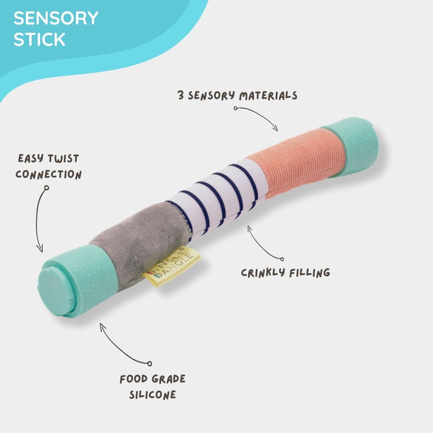 Sensory Rod: This isn’t just any rod—this is the MVP of distraction. With three different textured fabrics and high-contrast black and white colors, it’s designed to captivate your baby’s attention during diaper changes. Bonus: when it’s not in action, the rod is ergonomically designed to fit perfectly into your baby’s hand, encouraging those fine motor skills.