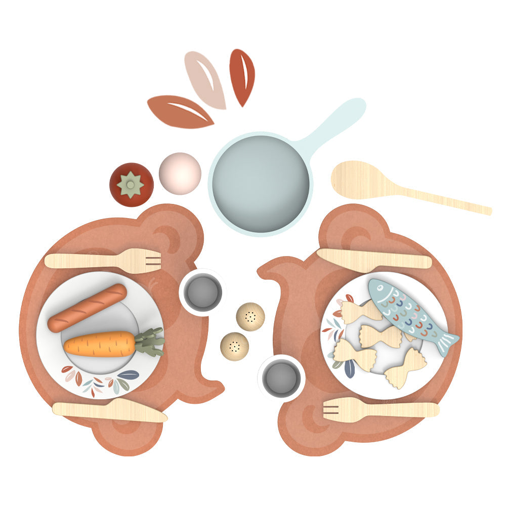 Cute 19 piece wooden dining set for two that your little one will adore.