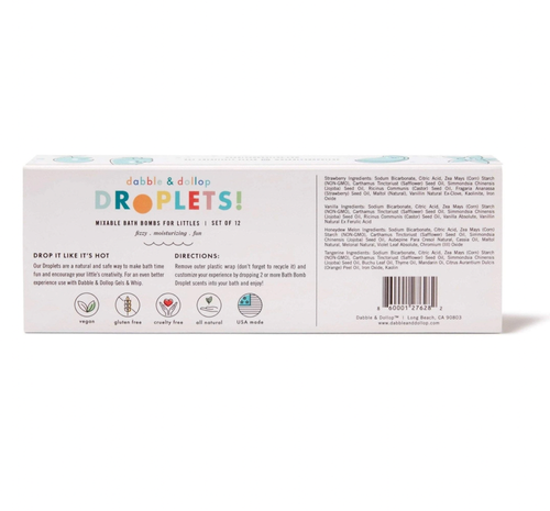 - 12 child-friendly Droplets, each 1 inch in size, designed for a delightful bath experience