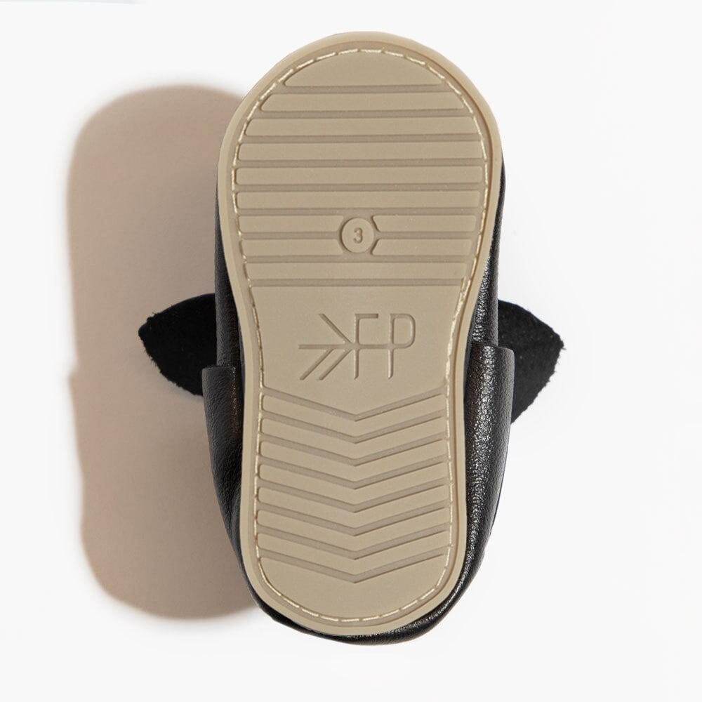 The knotted bow mocc that can go with ANYTHING! These ebony-colored genuine leather moccs feature an adorable knotted bow on top and soles to match. Your babe's closet needs these staple moccs!