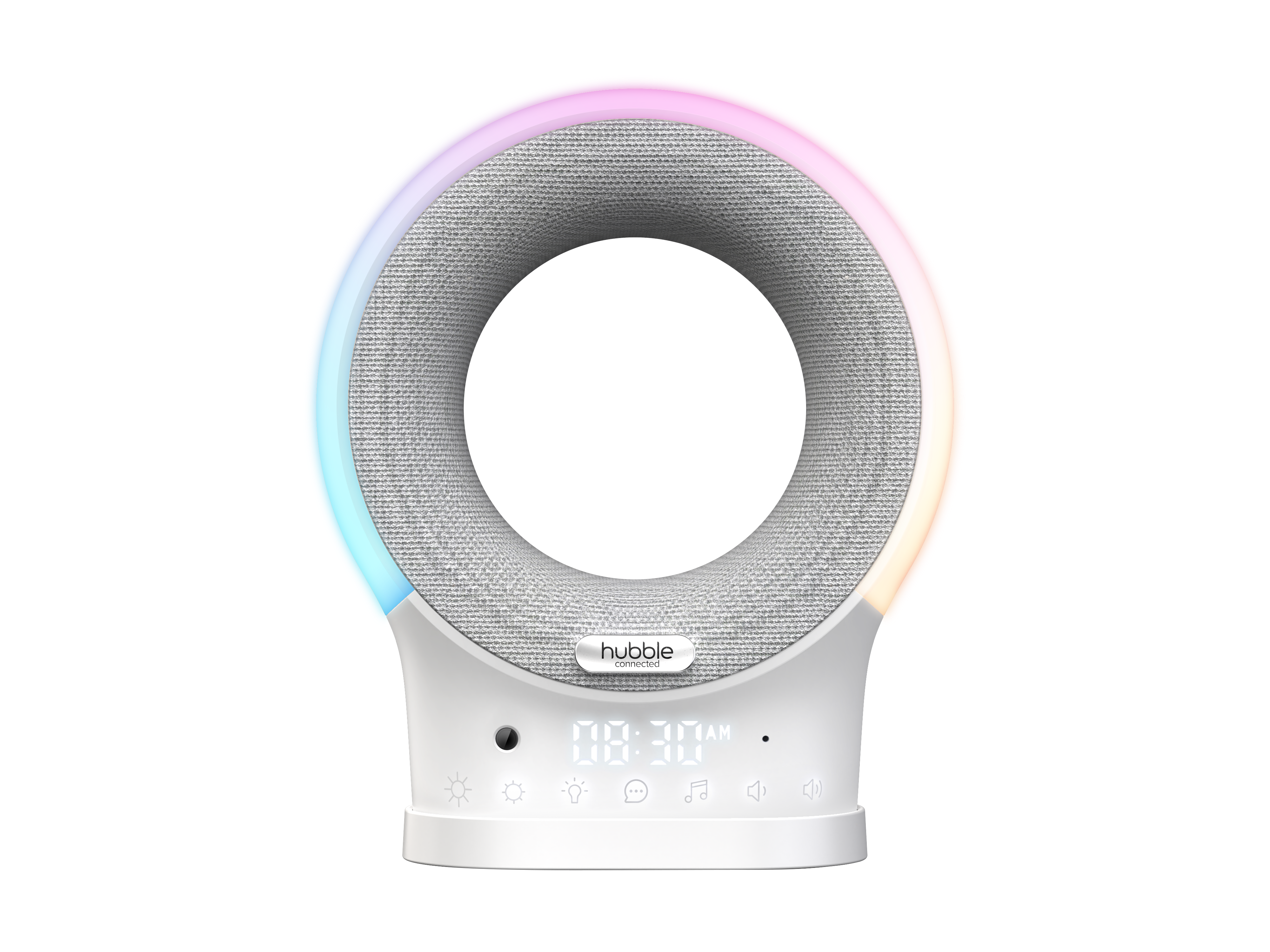Introducing the next breakthrough in emotional technology from Hubble Connected — the Hubble Eclipse+. Part of our new Hubble Health line, this Smart Wi-Fi Audio Monitor, Soother, and Bluetooth Speaker is designed to create a calm, connected environment for you and your little one.