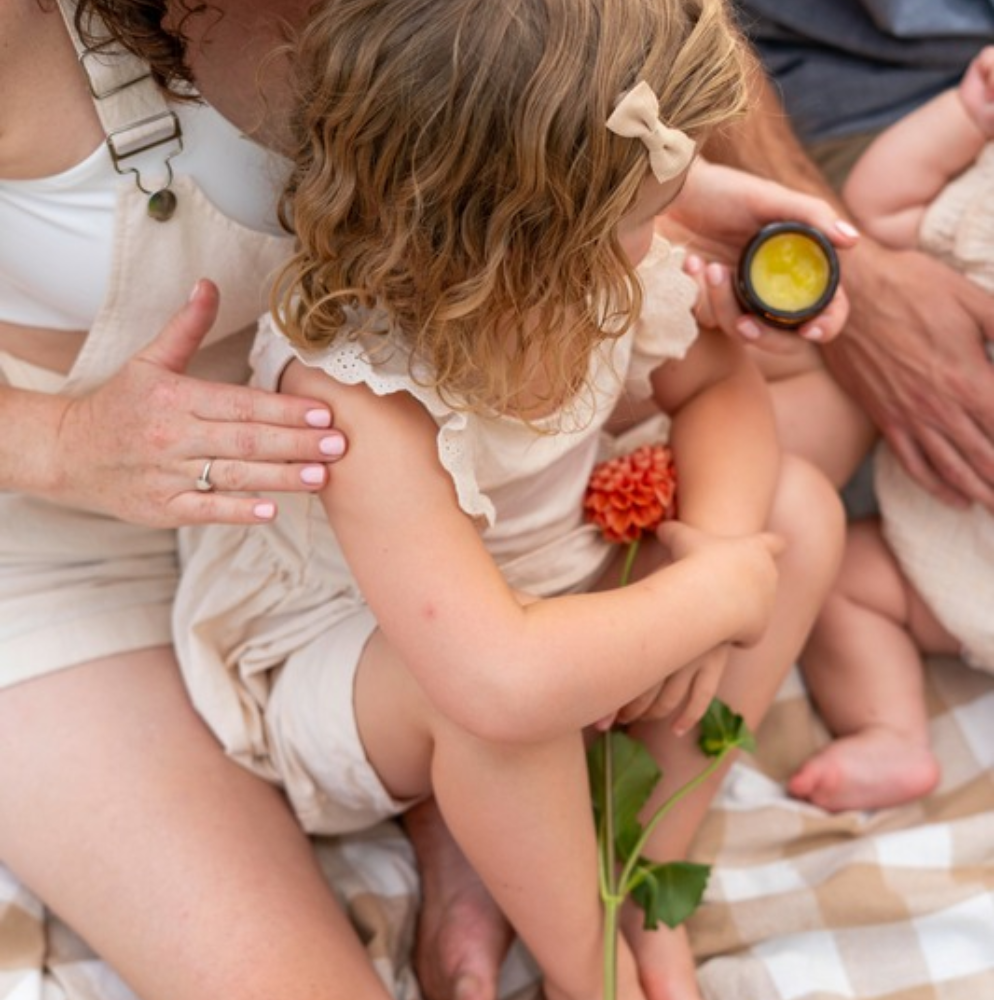 Everyday Baby Balm is a lightweight salve infused with soothing organic herbs. This herbal balm is lightly scented with chamomile flowers and is the perfect moisturizer for bath time, bedtime, and anytime.