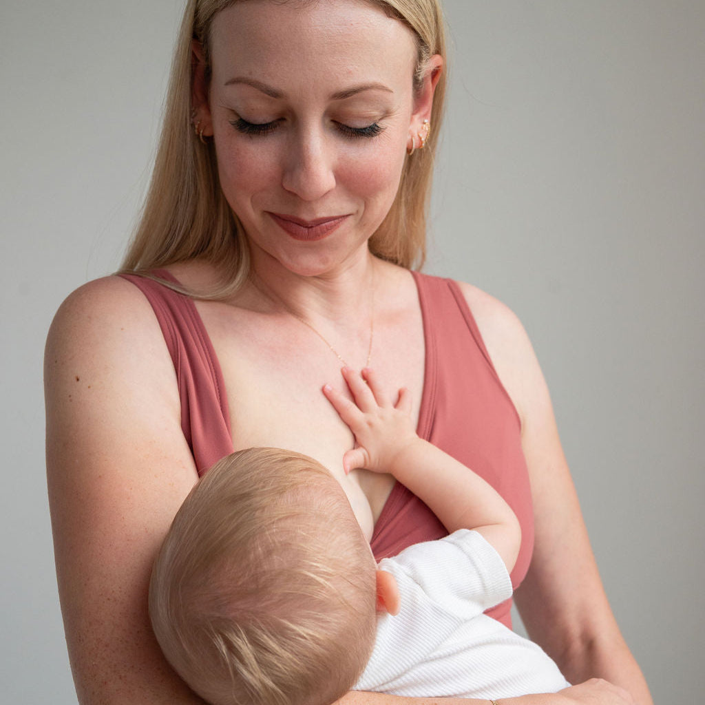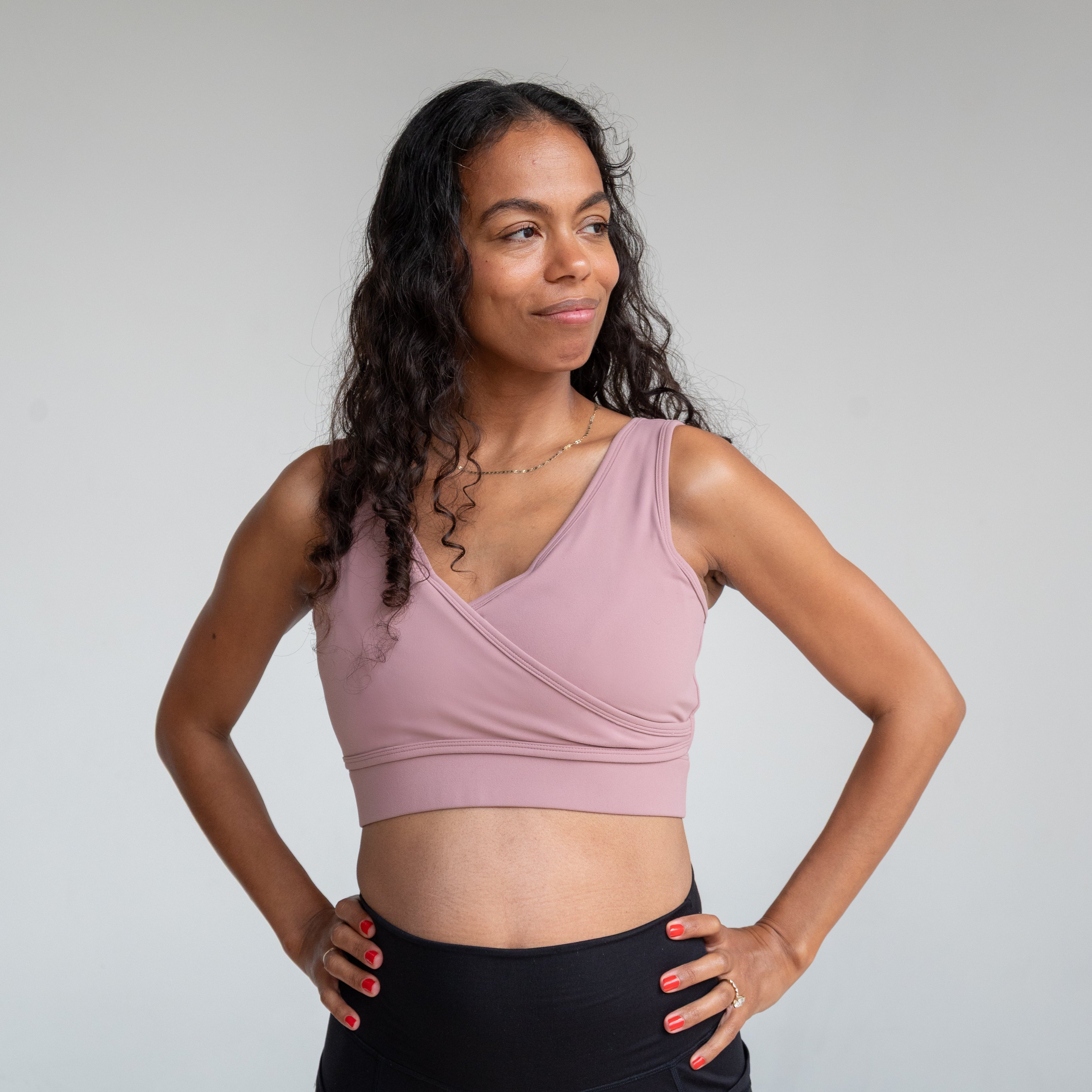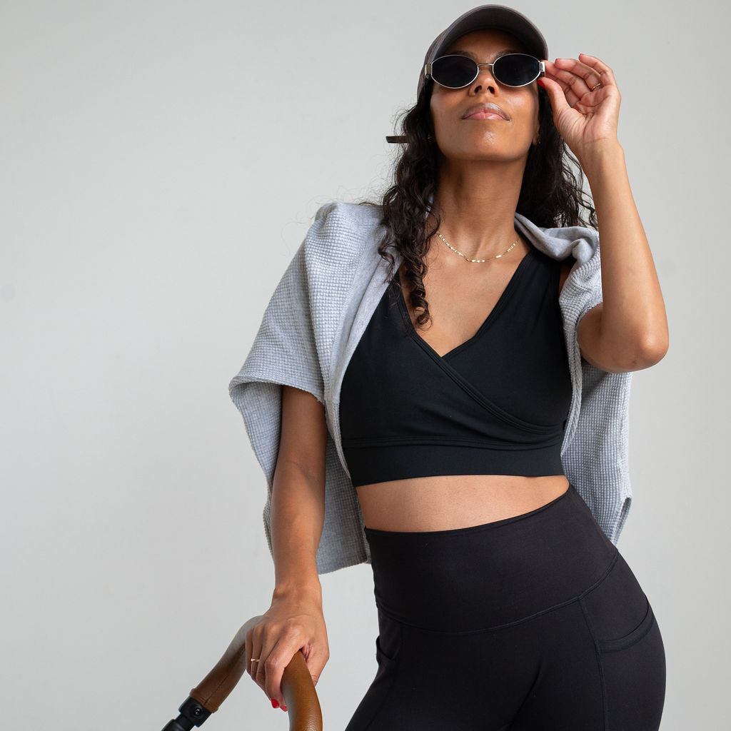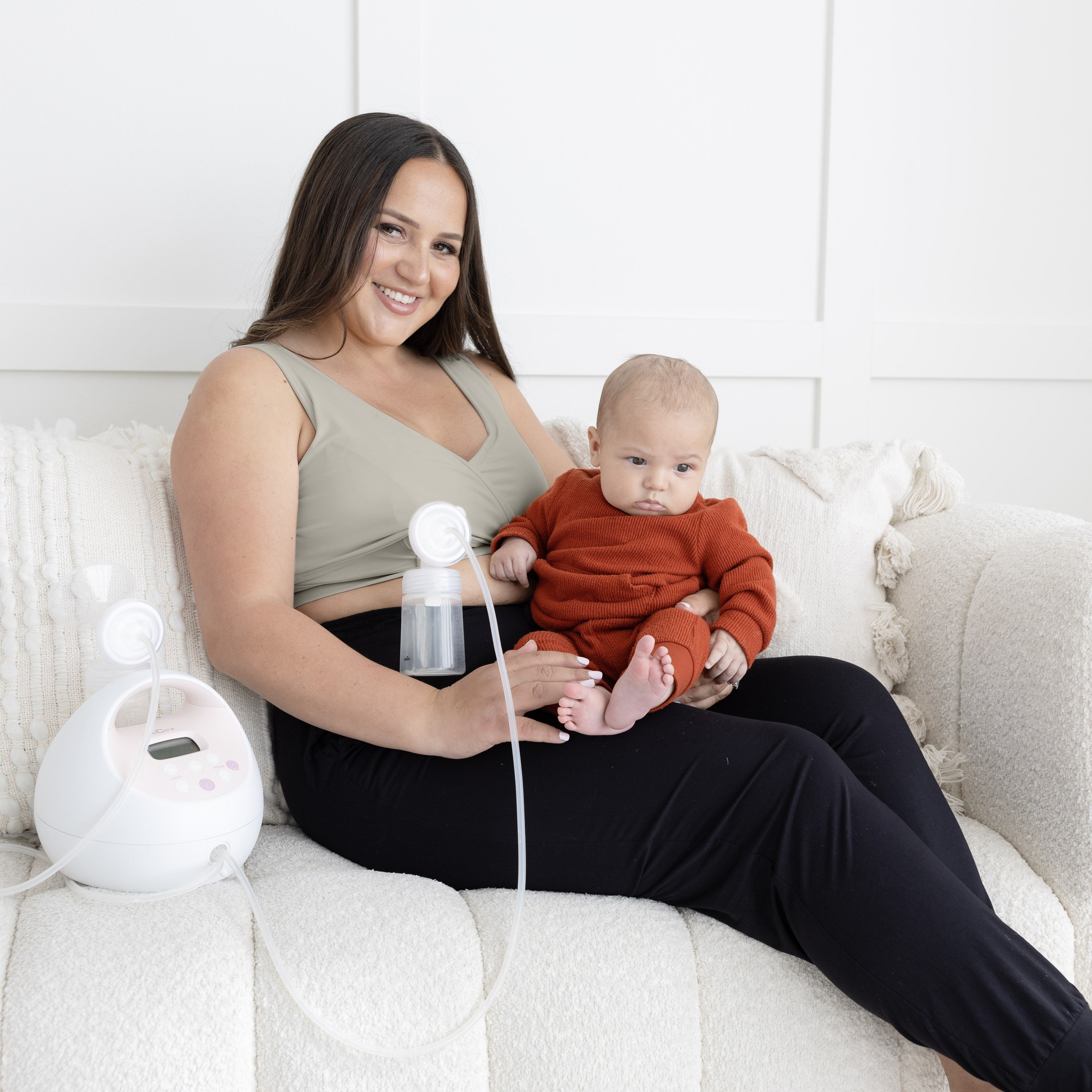 An all-in-one nursing and hands-free pumping bra made with buttery soft fabric that is still pretty supportive for everyday wear! It's wire-free, with no zippers, clips or hooks to keep you comfortable all day long. Even wear it for sleeping so you can pump and nurse with ease during those night feedings. Our hands-free breast pump bra is machine washable and dryer-friendly.