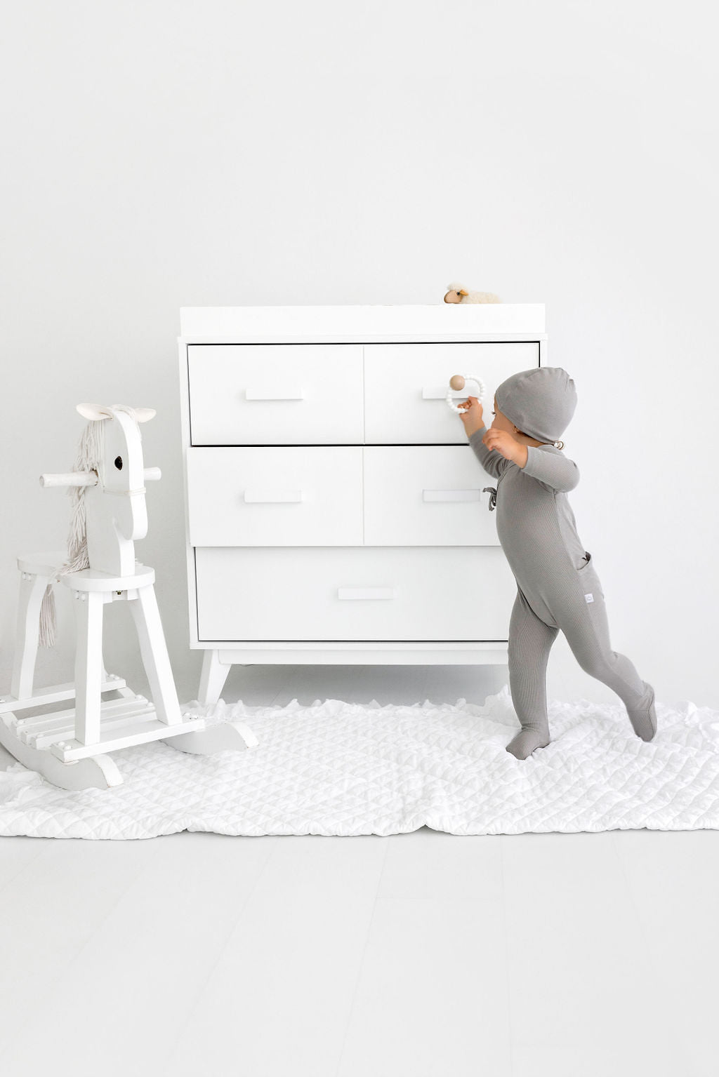 Indulge in luxurious comfort and style with our Faux Wrap Footie in Light Grey. This classy and elegant design features a wrap style, providing the perfect fit and great stretch for ultimate comfort. Your baby will feel both confident and cozy in this must-have piece! Fits true to size.