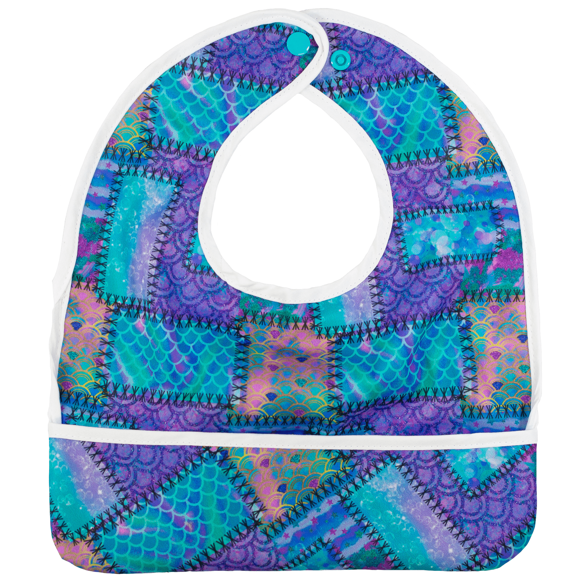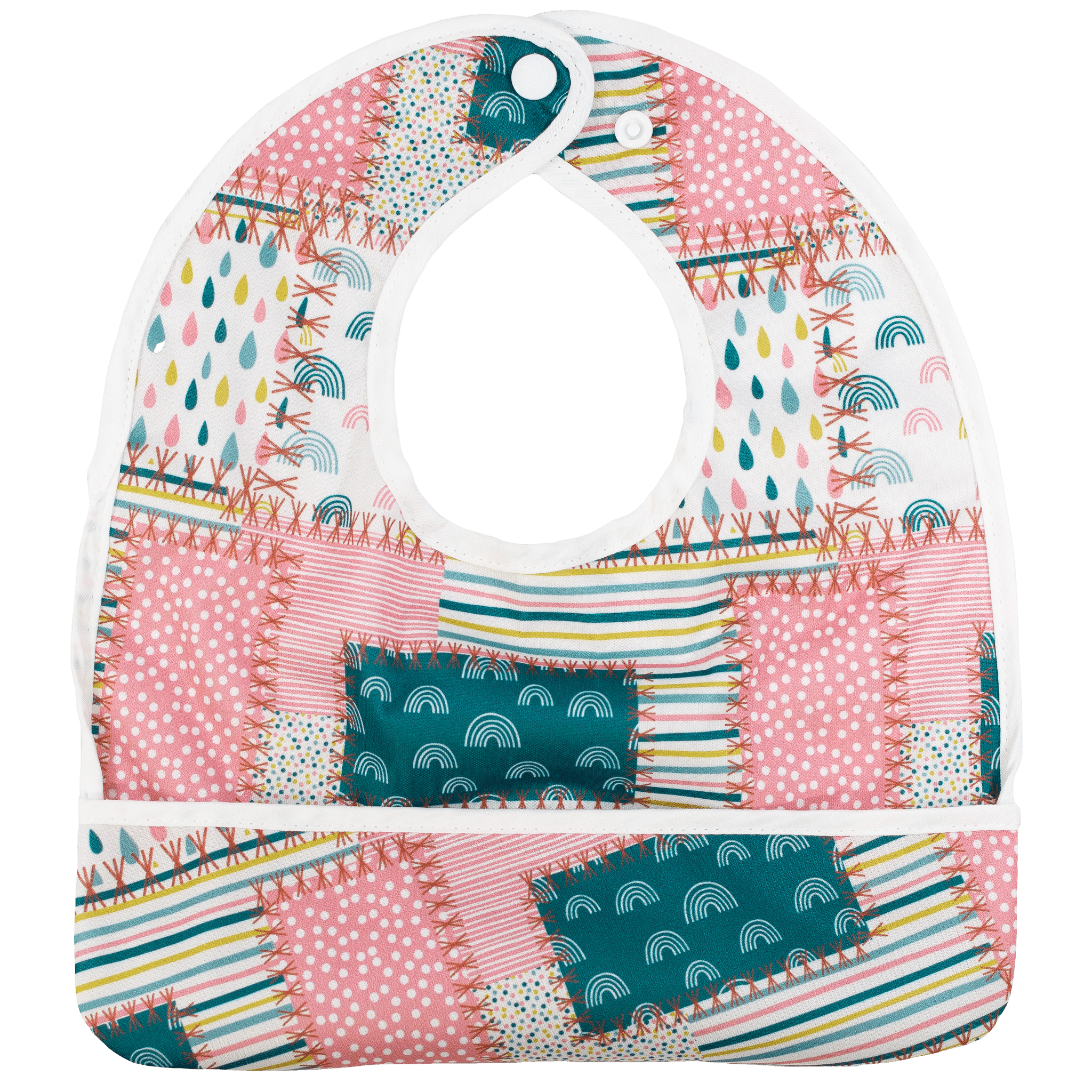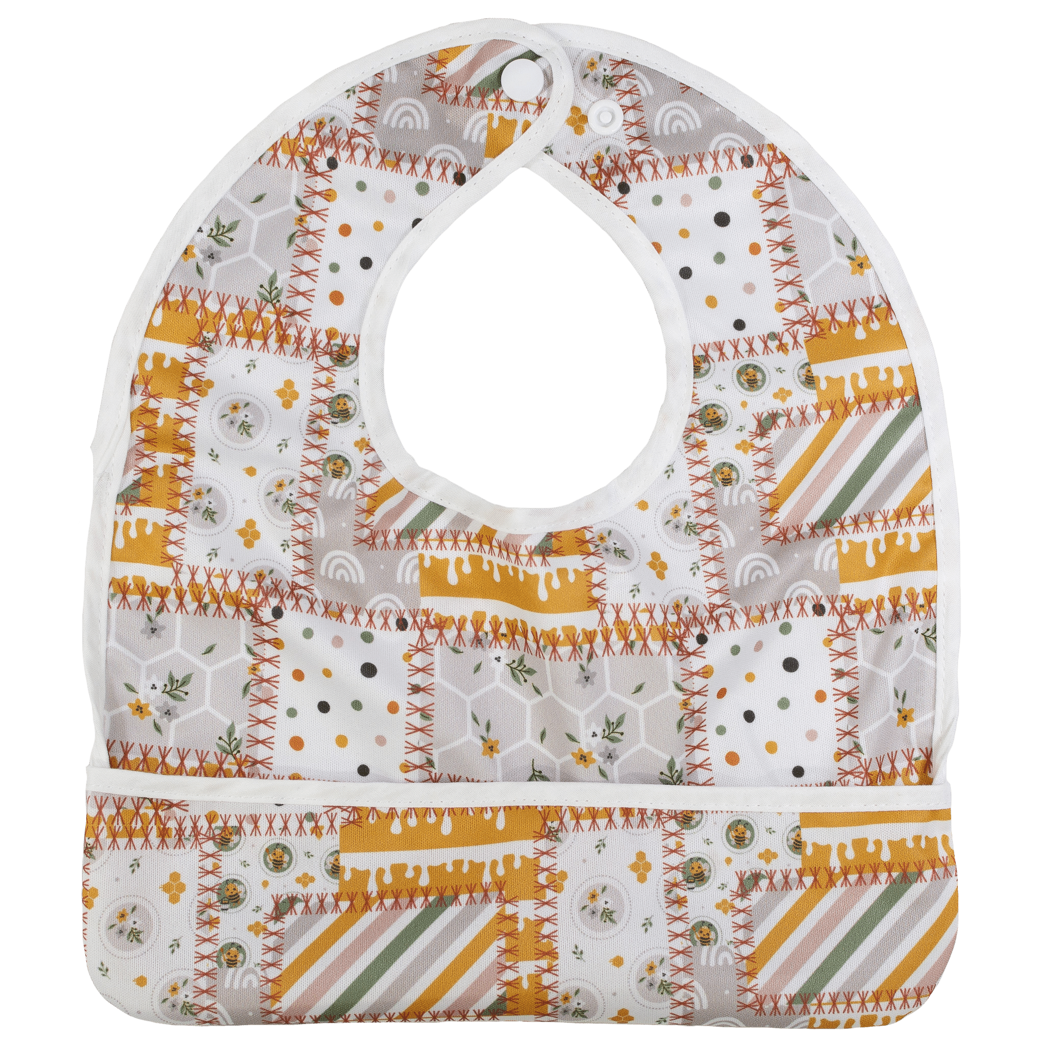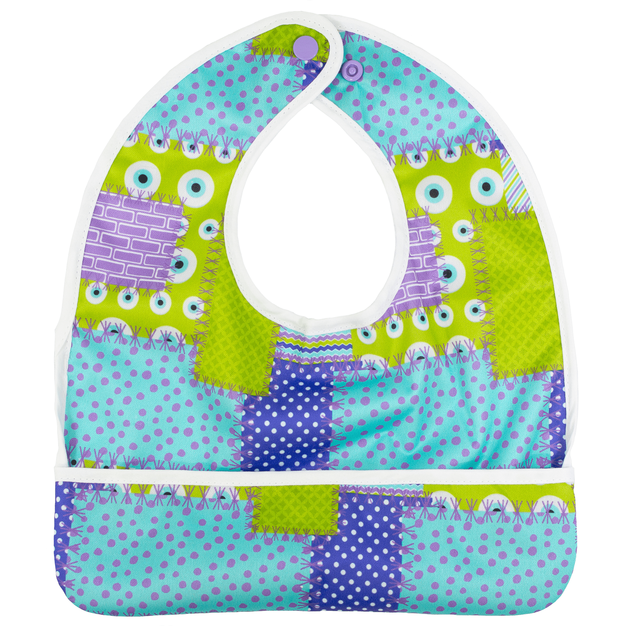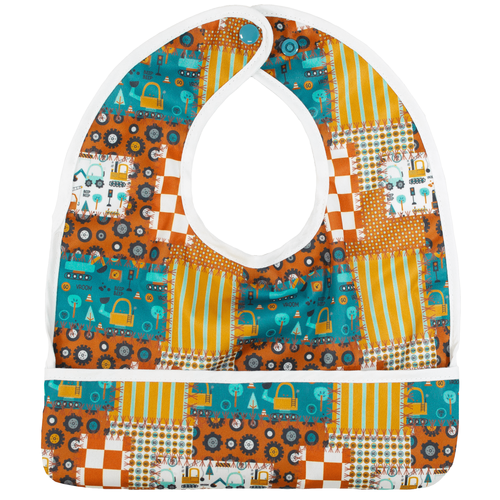 These bibs have a pocket to catch food, and drool! Each bib can be flipped back to be used without the pocket. These are machine washable, and made with the same components as a cloth diaper! PUL is water resistant, and easy to clean.