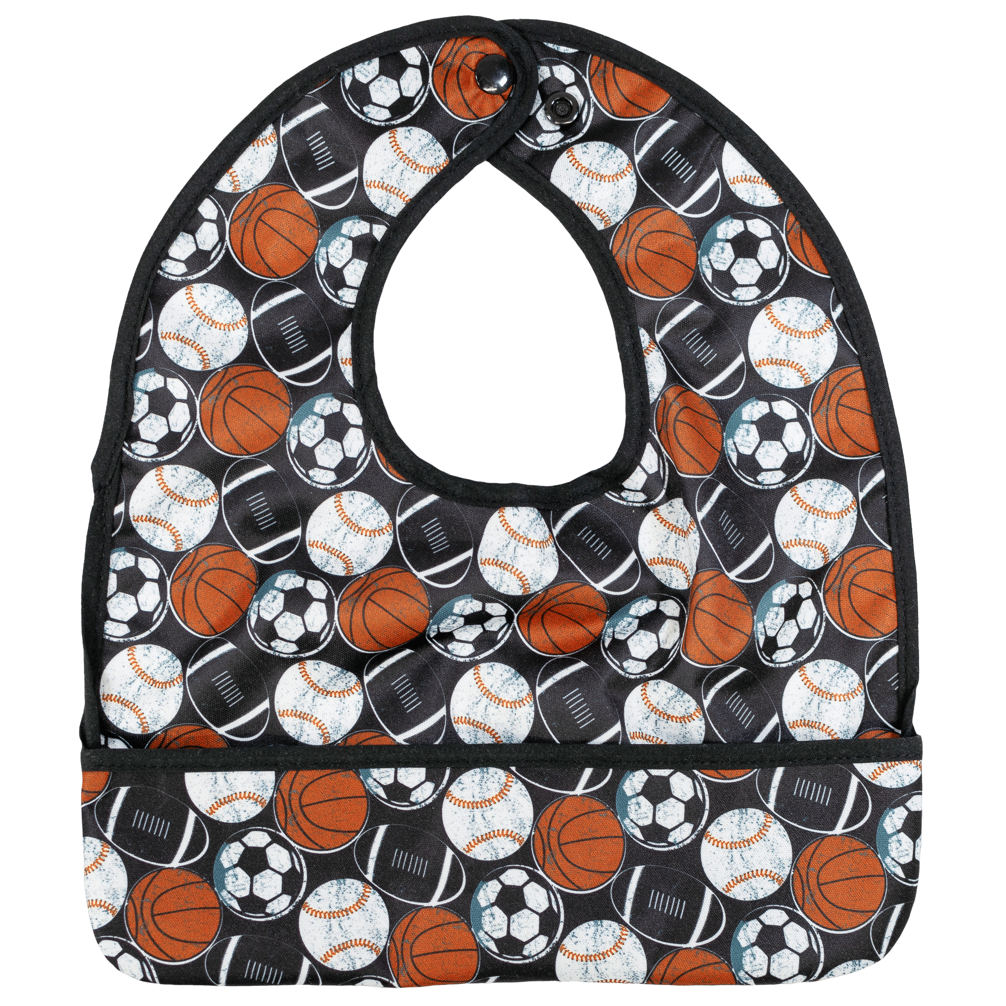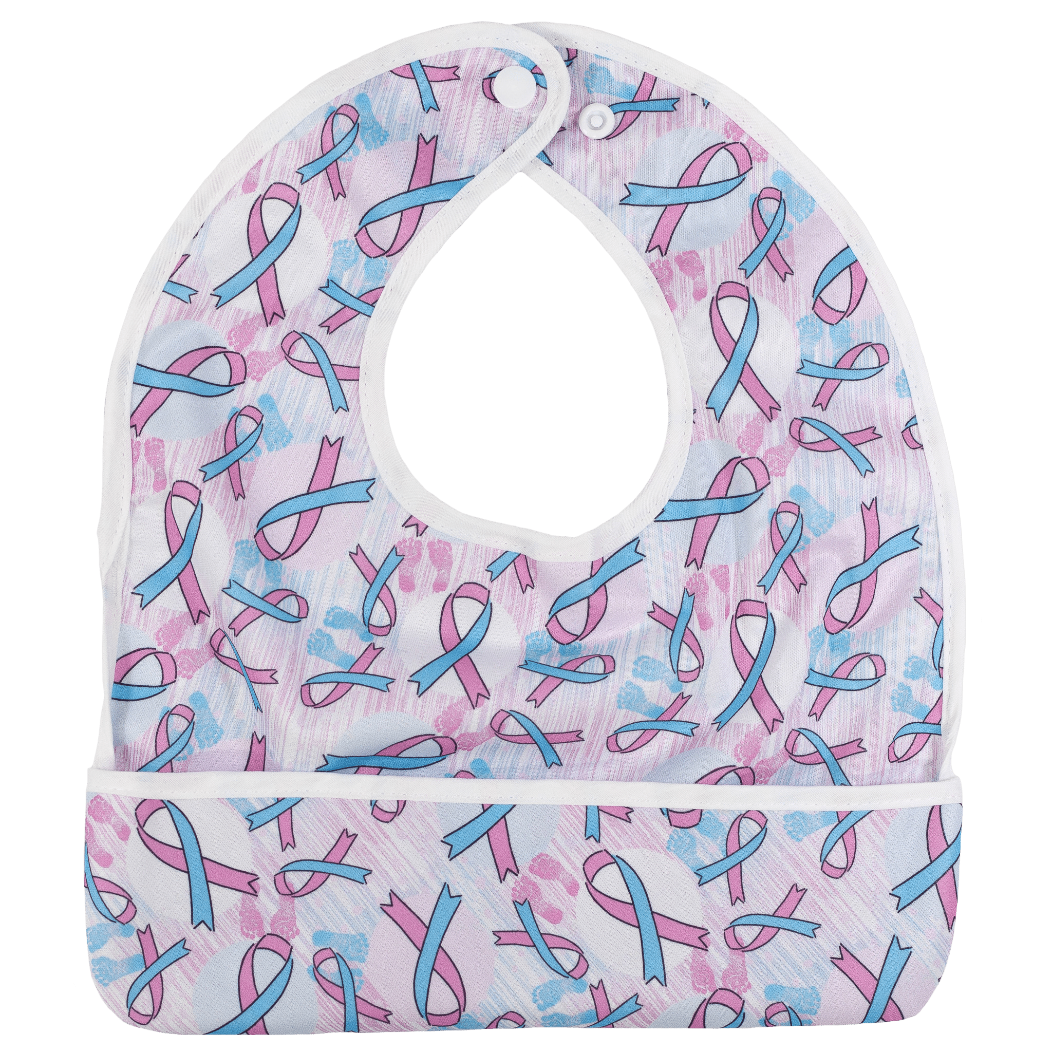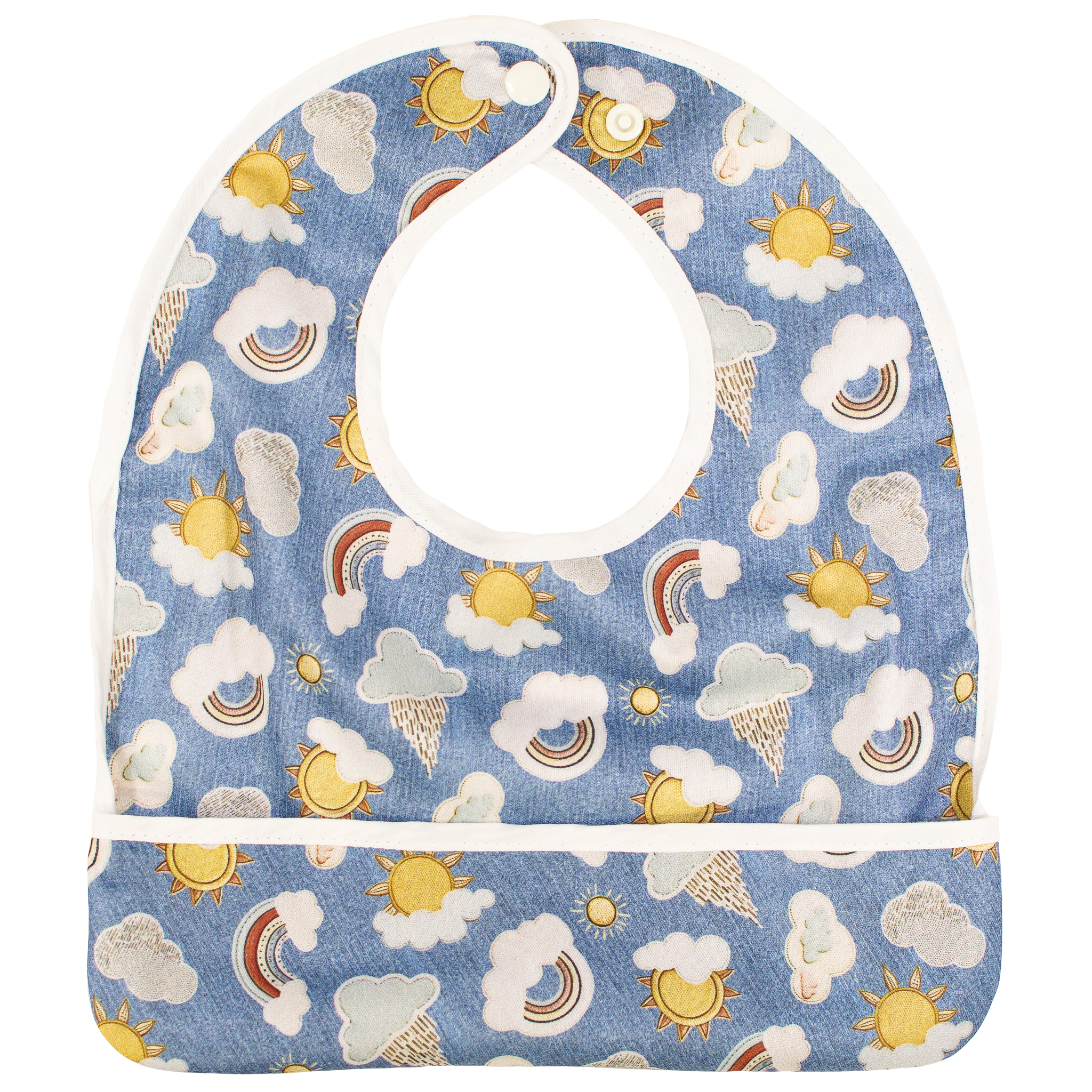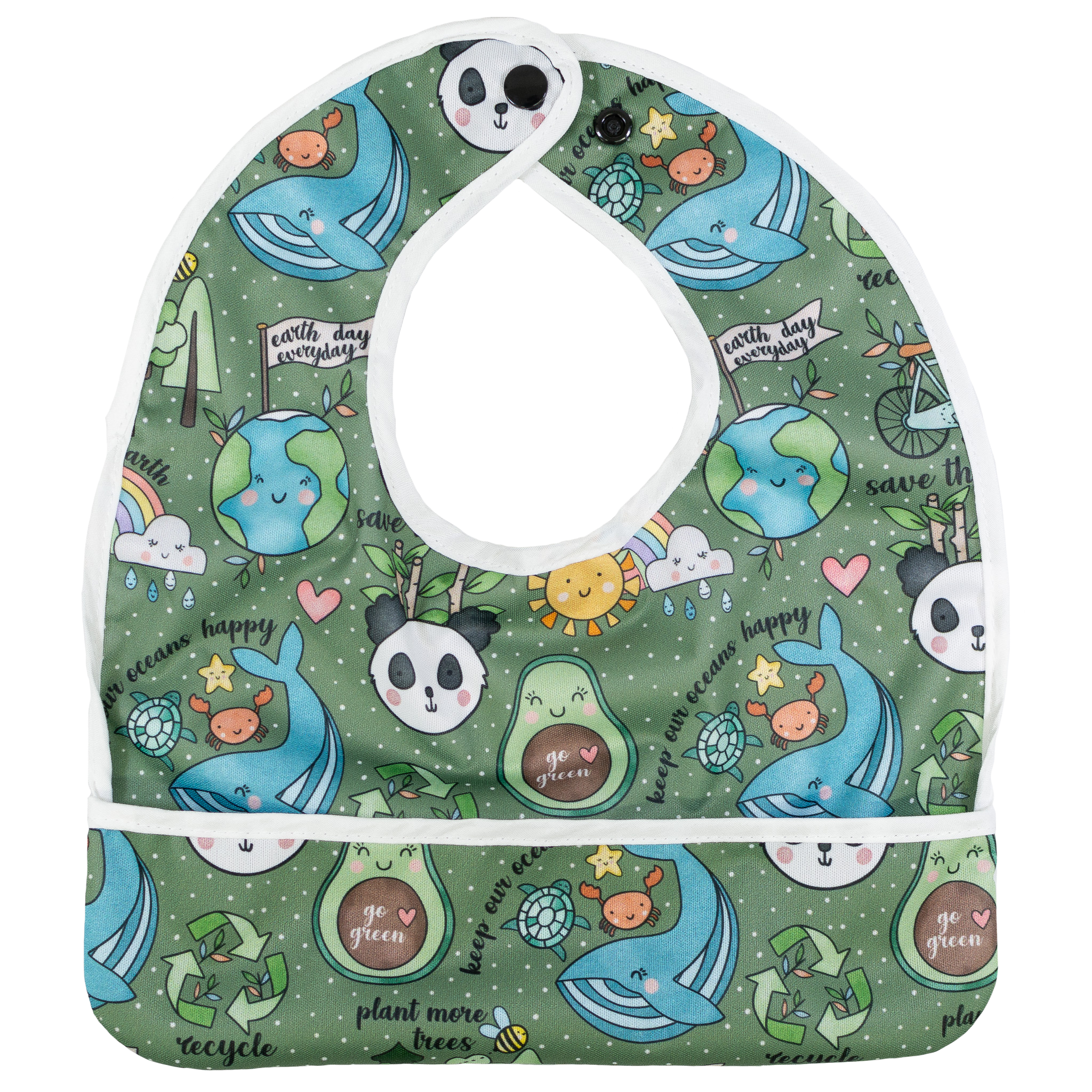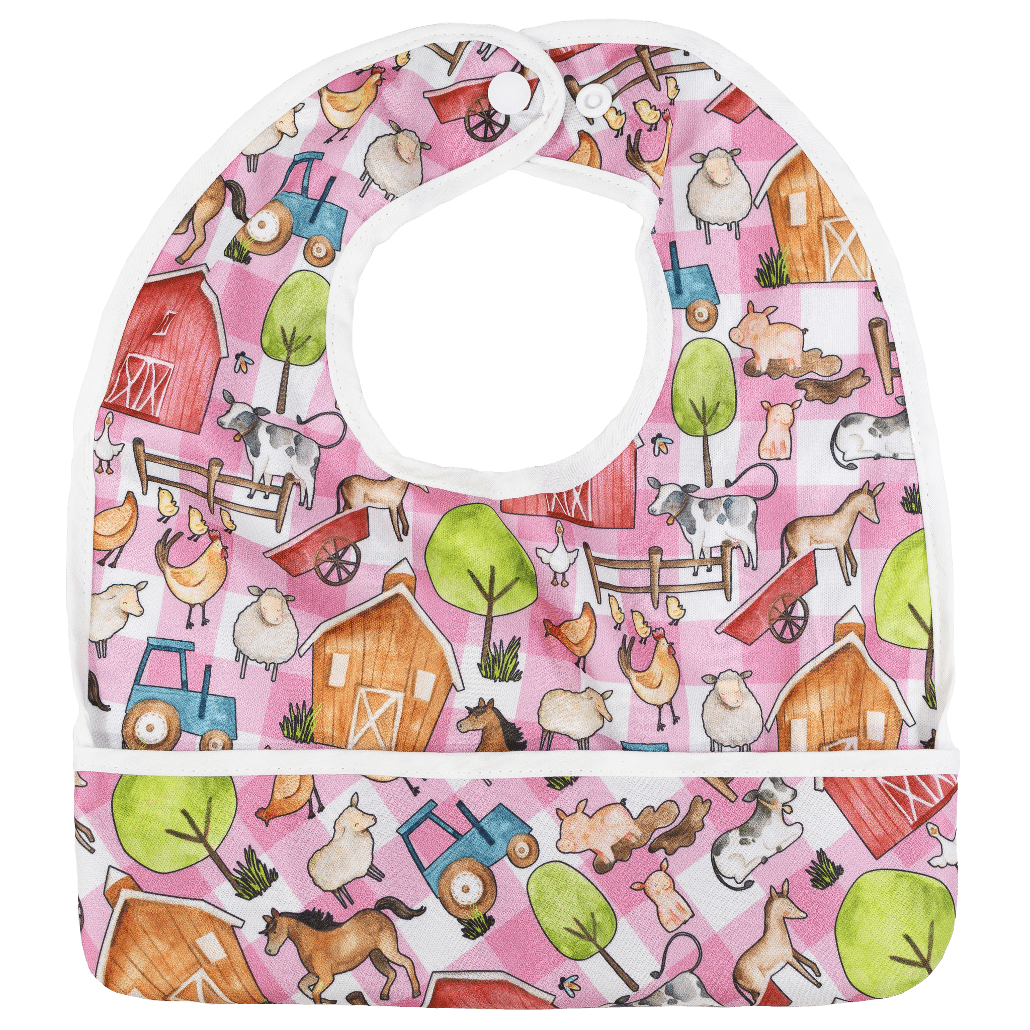 These bibs have a pocket to catch food, and drool! Each bib can be flipped back to be used without the pocket. These are machine washable, and made with the same components as a cloth diaper! PUL is water resistant, and easy to clean.