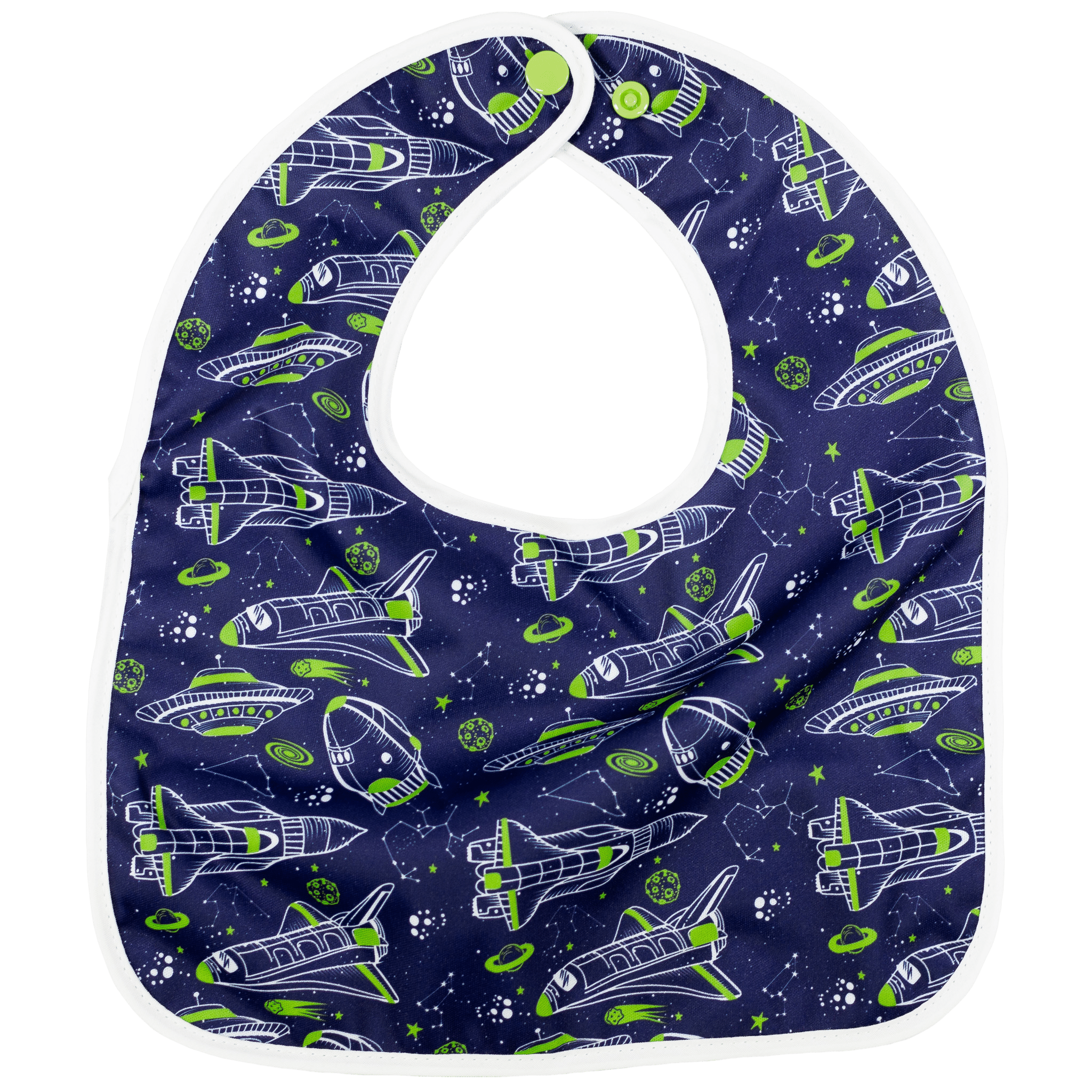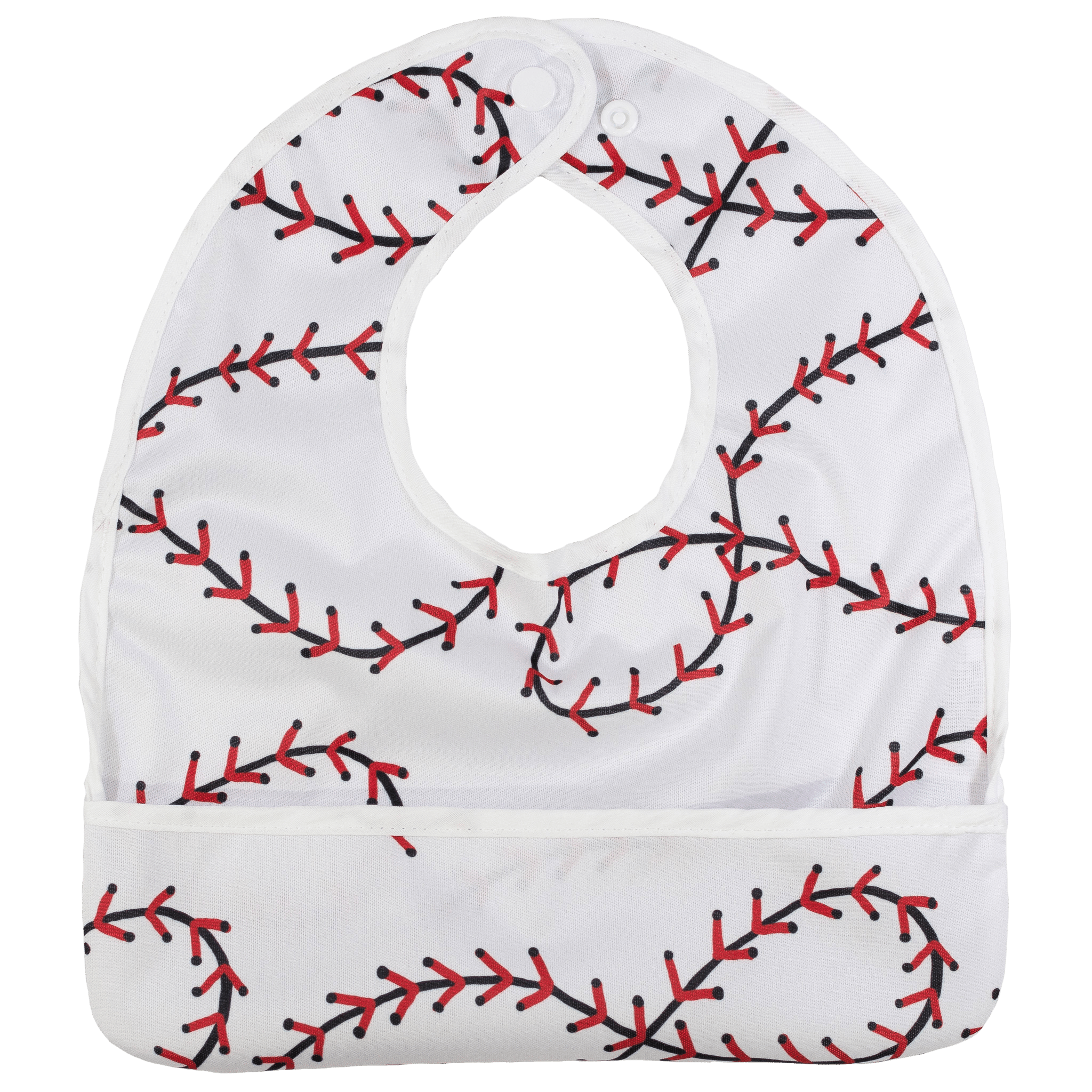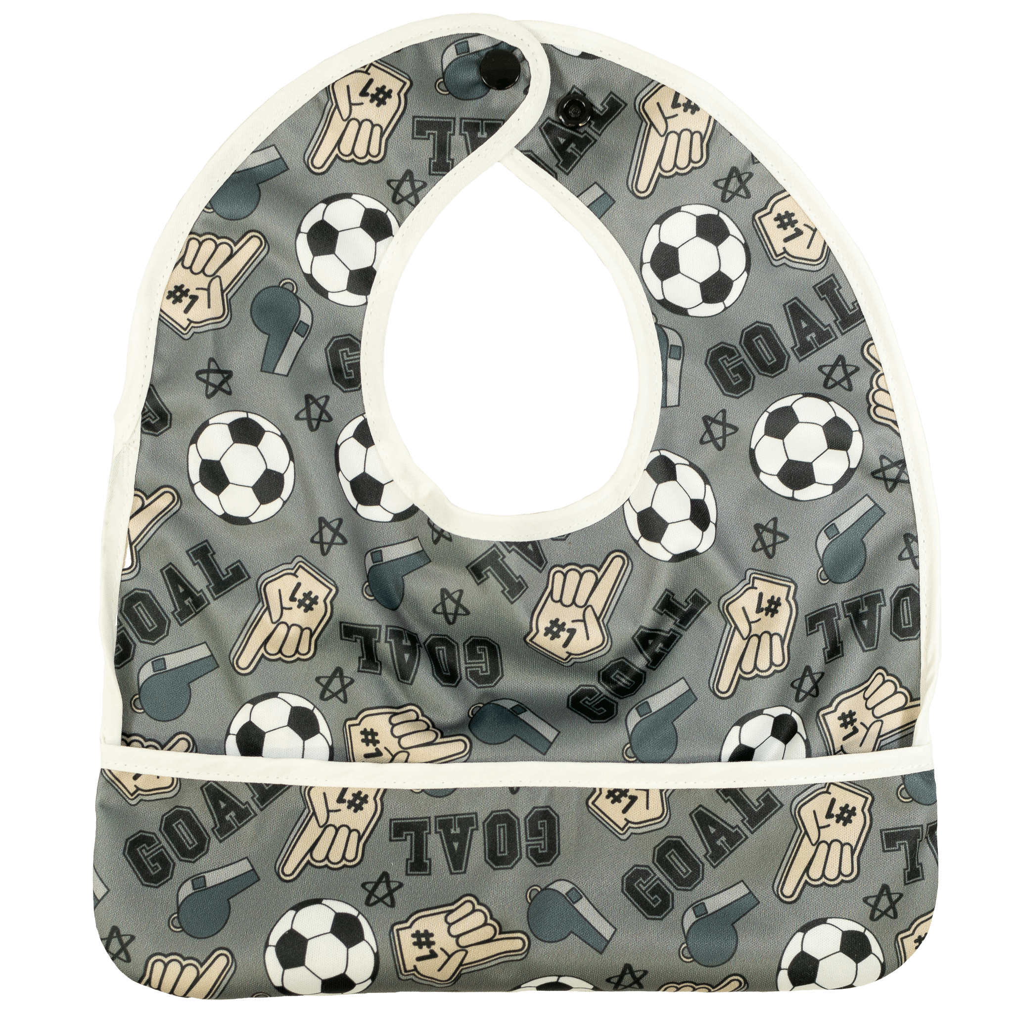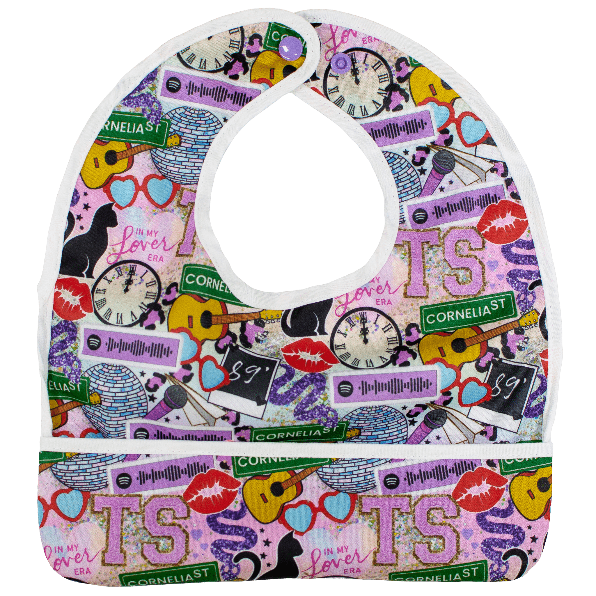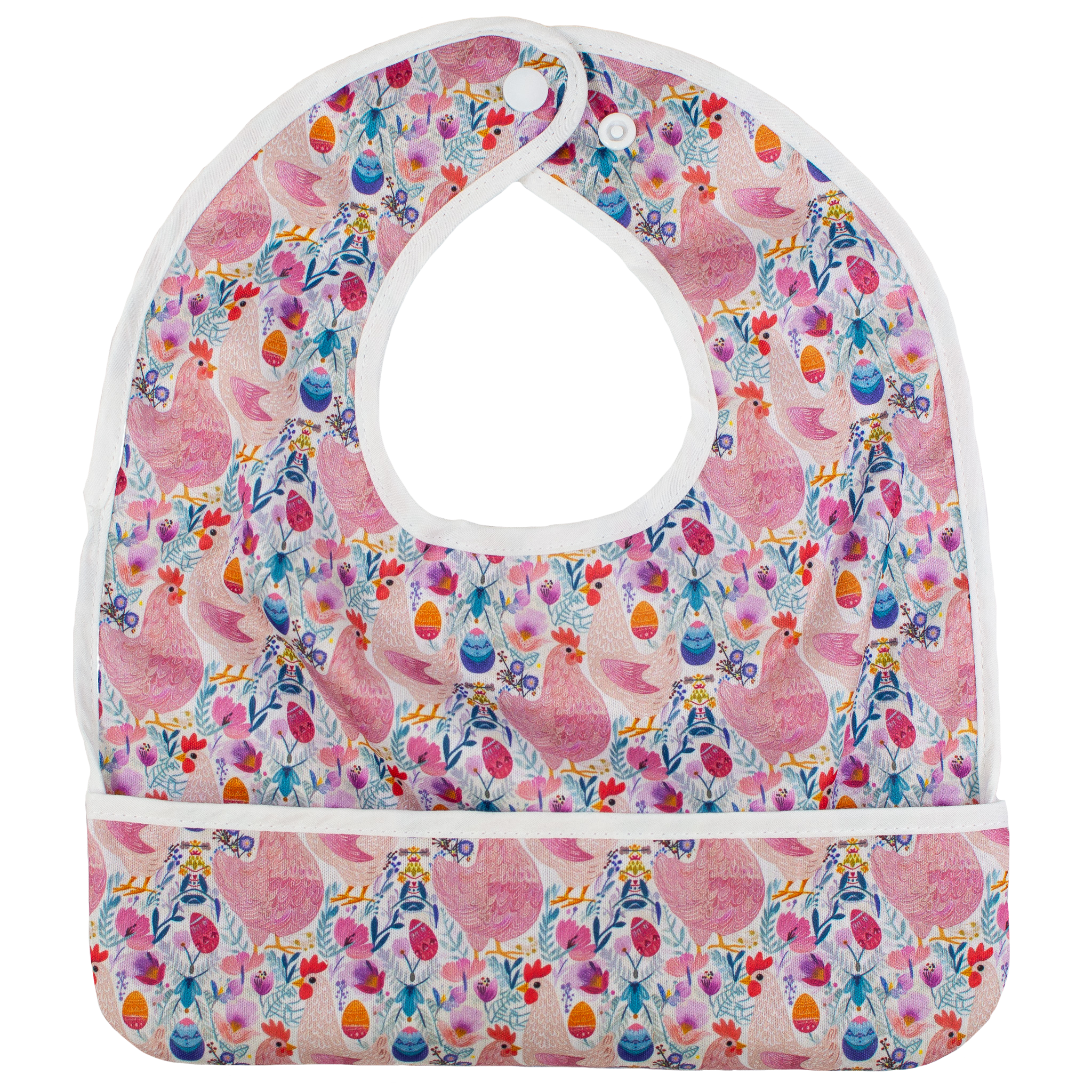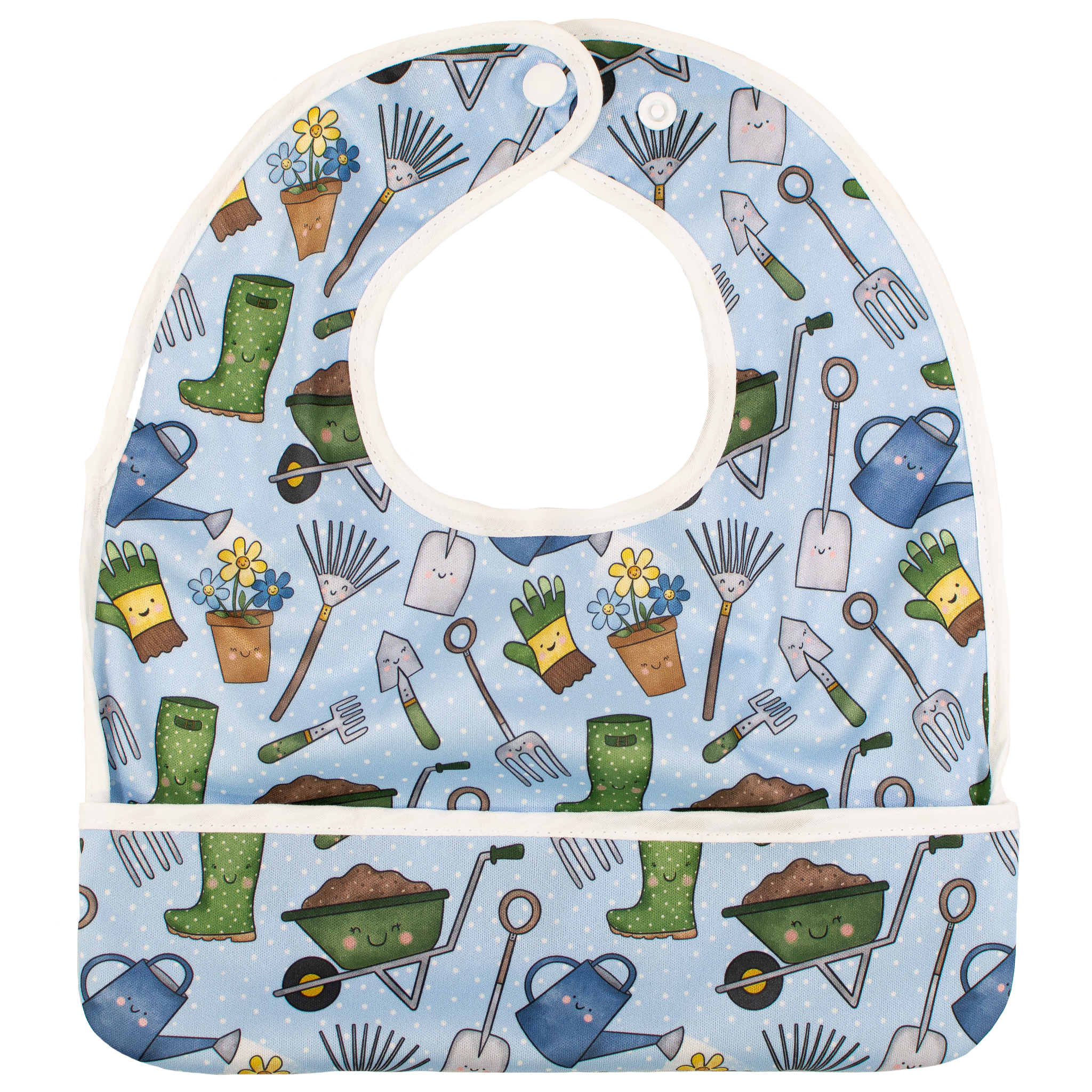 These bibs have a pocket to catch food, and drool! Each bib can be flipped back to be used without the pocket. These are machine washable, and made with the same components as a cloth diaper! PUL is water resistant, and easy to clean.