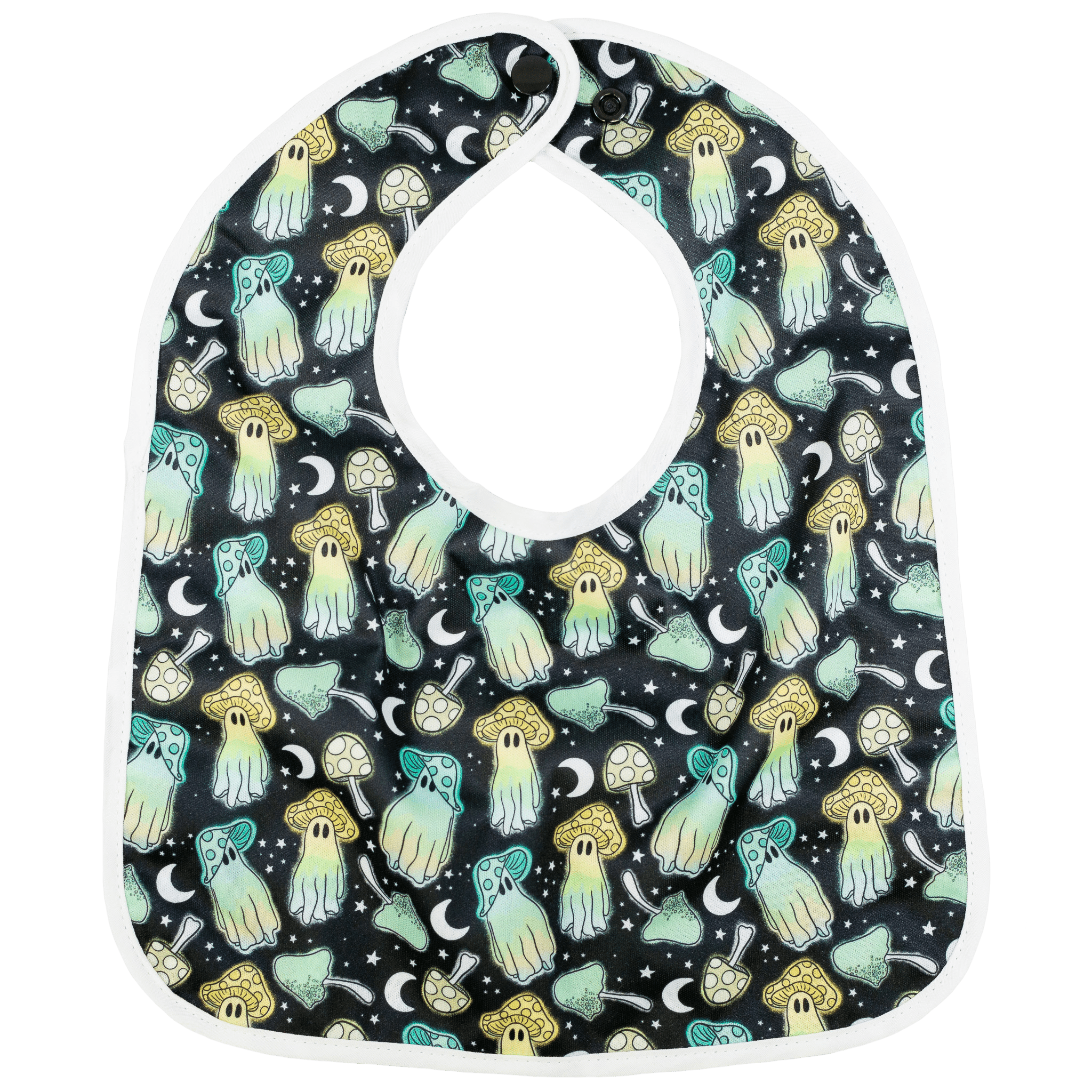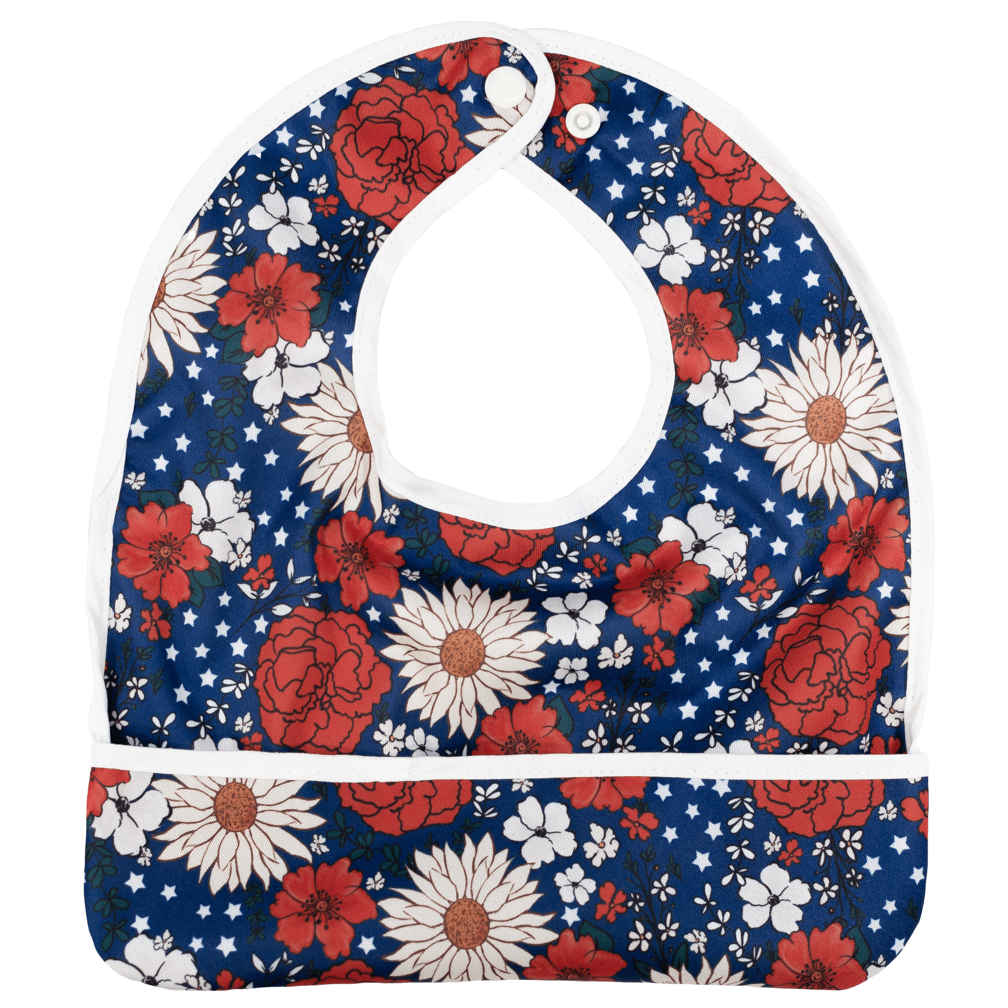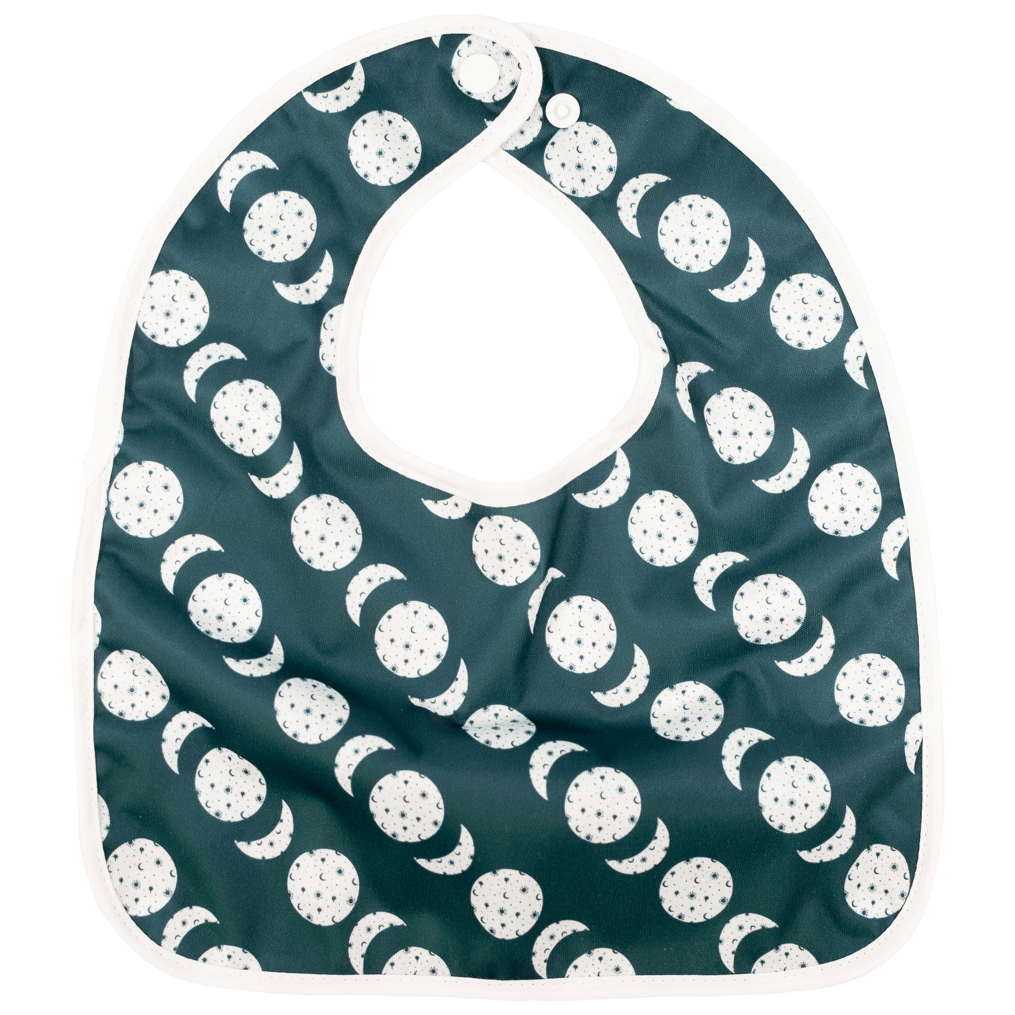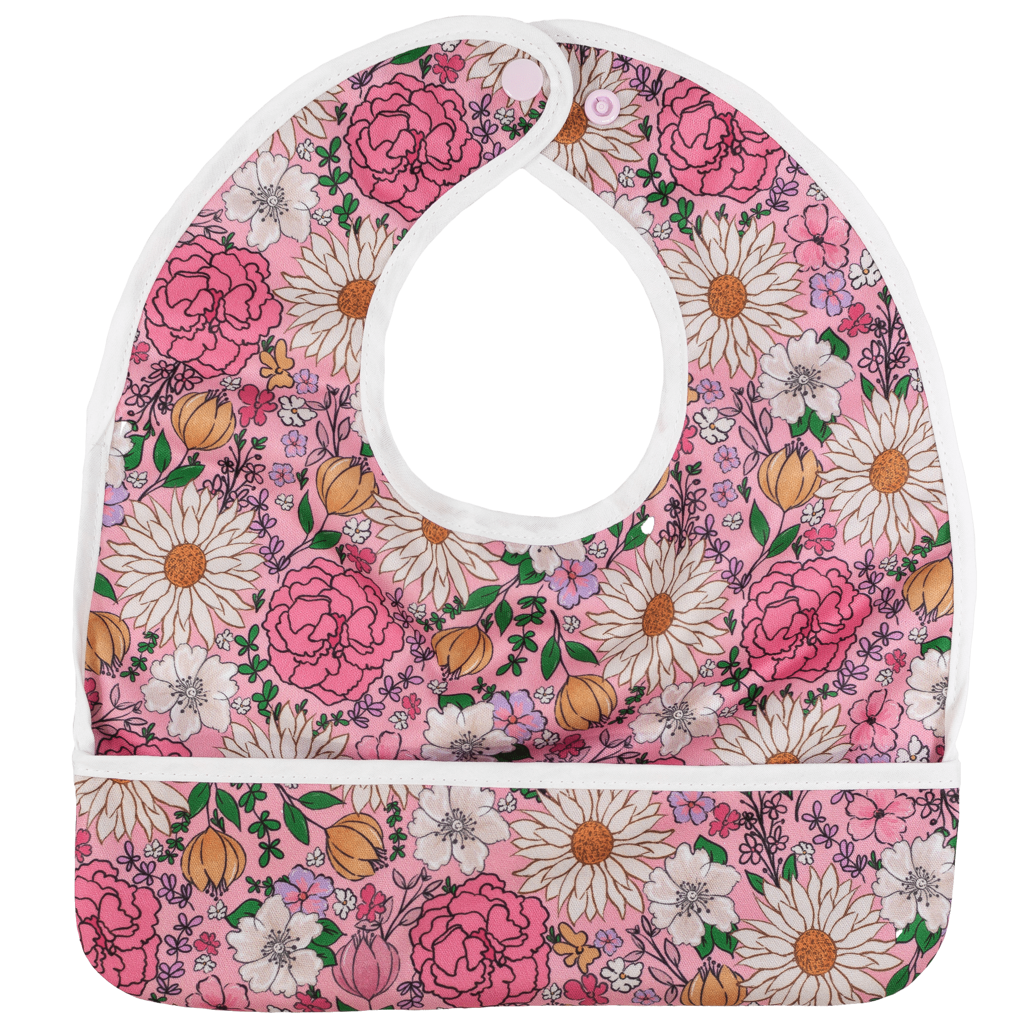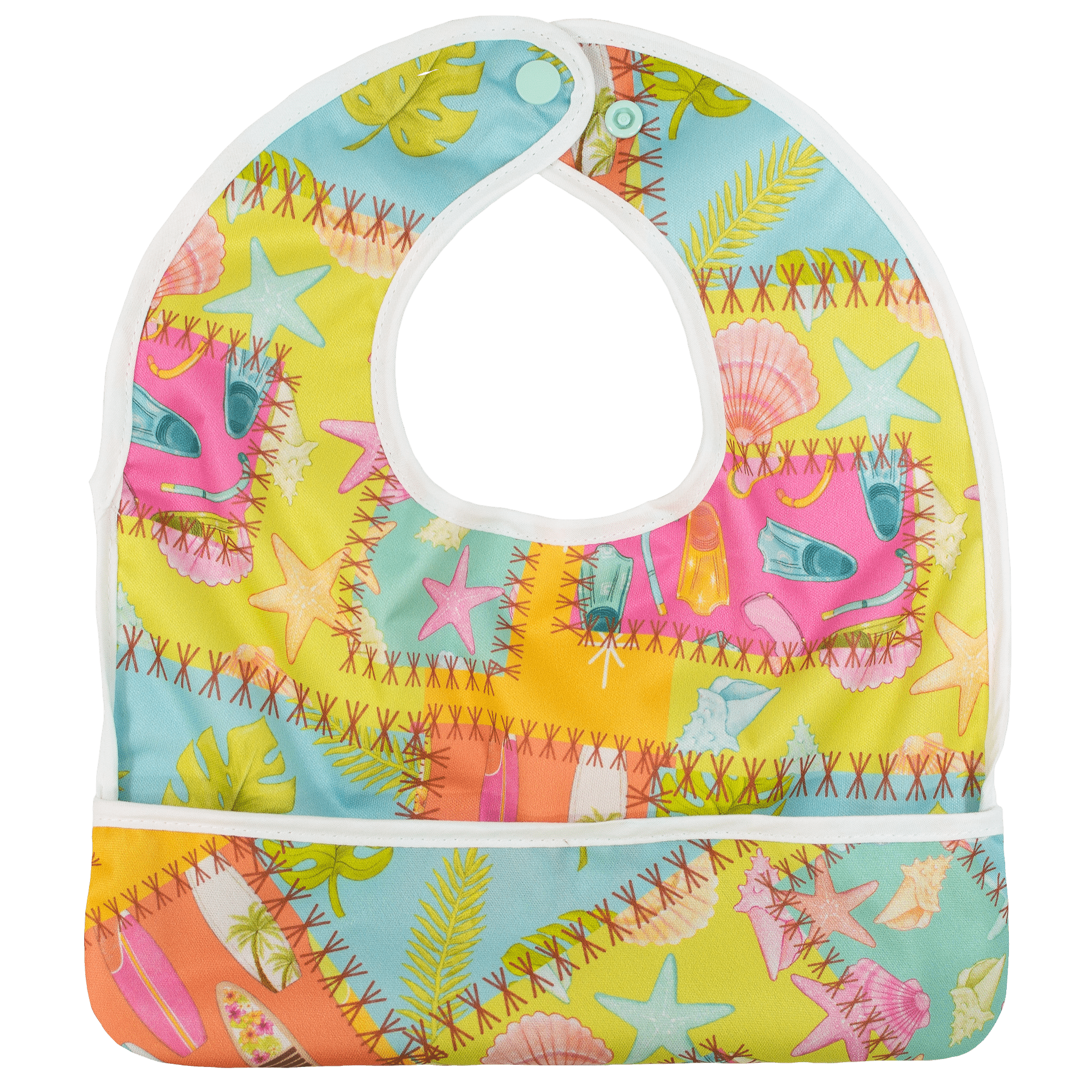 These bibs have a pocket to catch food, and drool! Each bib can be flipped back to be used without the pocket. These are machine washable, and made with the same components as a cloth diaper! PUL is water resistant, and easy to clean.