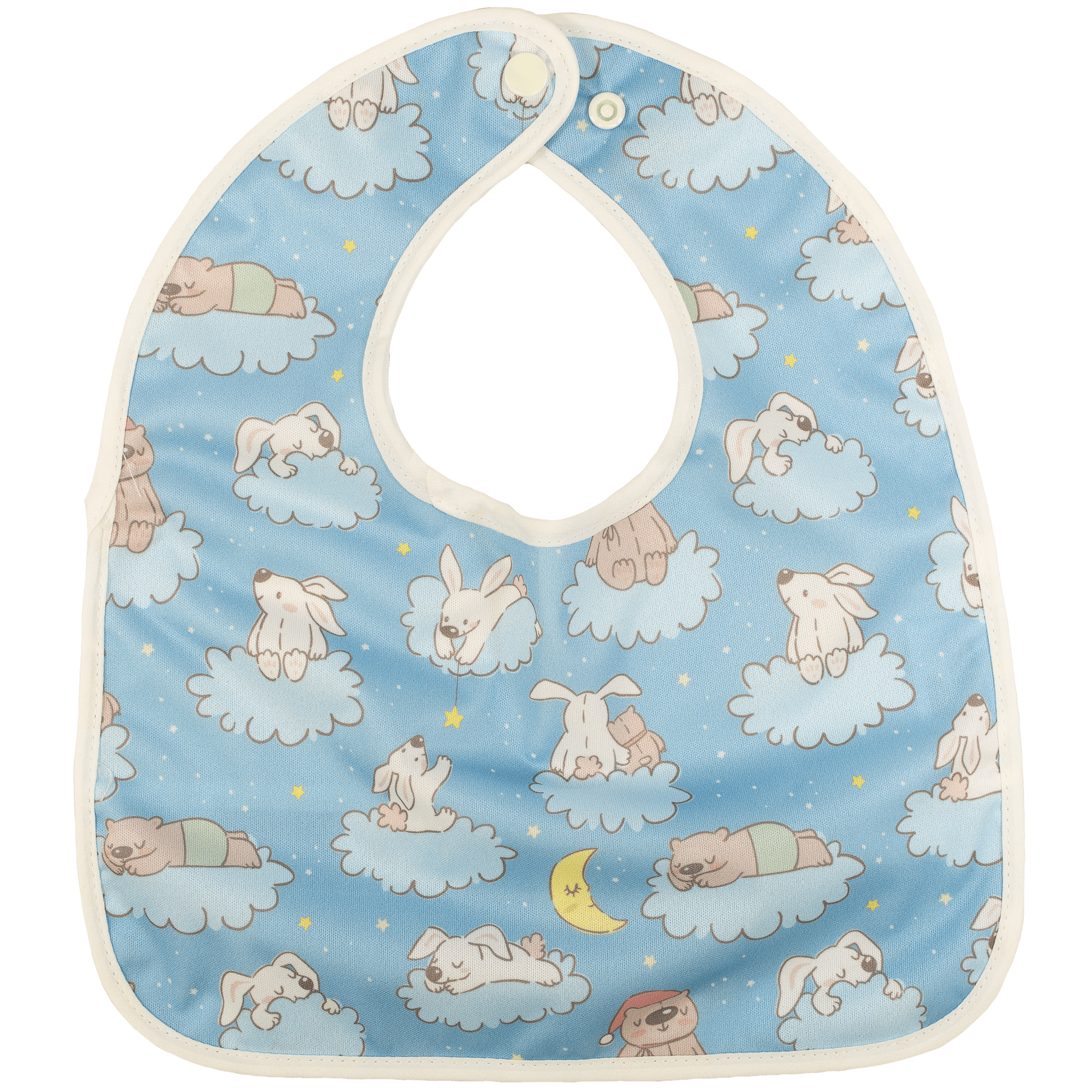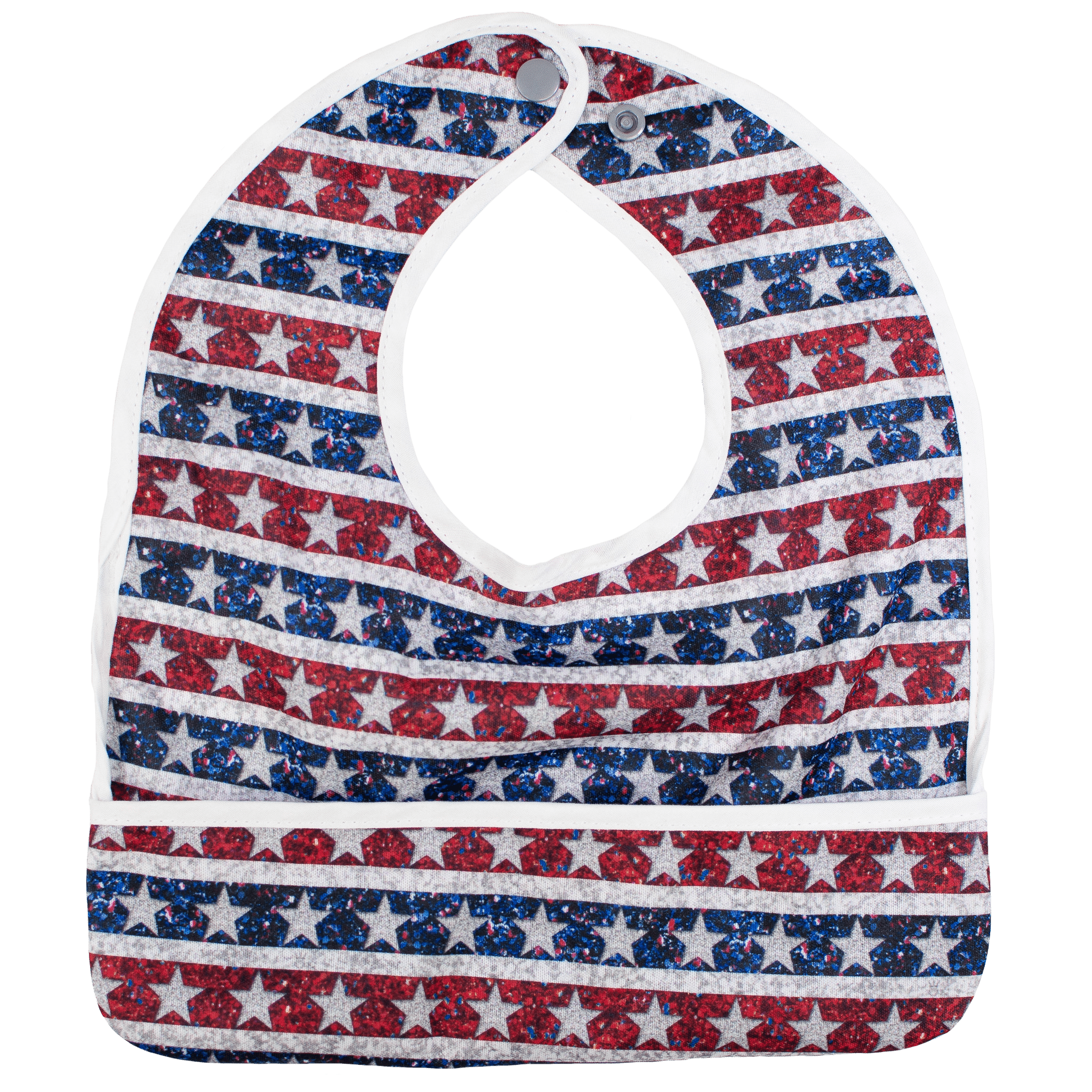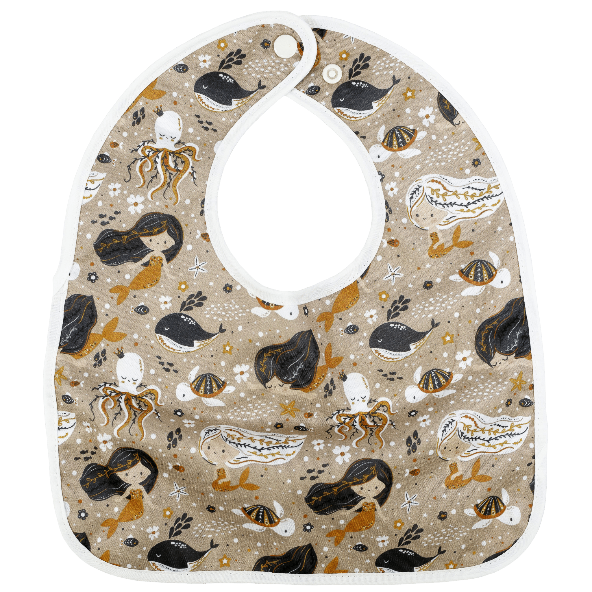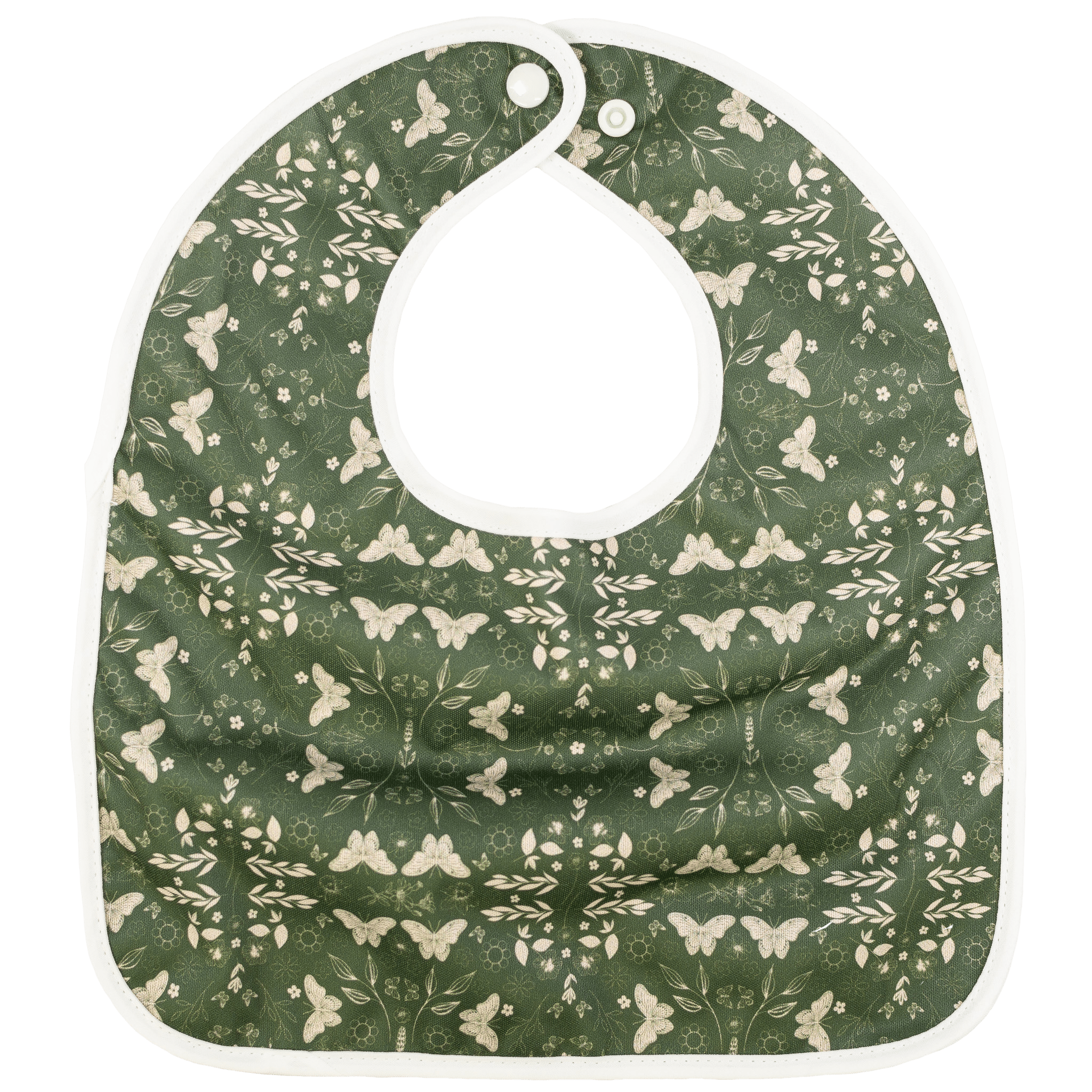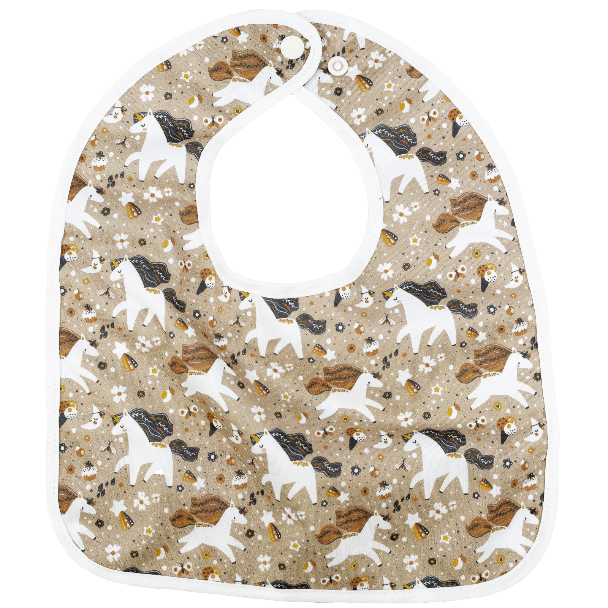 These bibs have a pocket to catch food, and drool! Each bib can be flipped back to be used without the pocket. These are machine washable, and made with the same components as a cloth diaper! PUL is water resistant, and easy to clean.