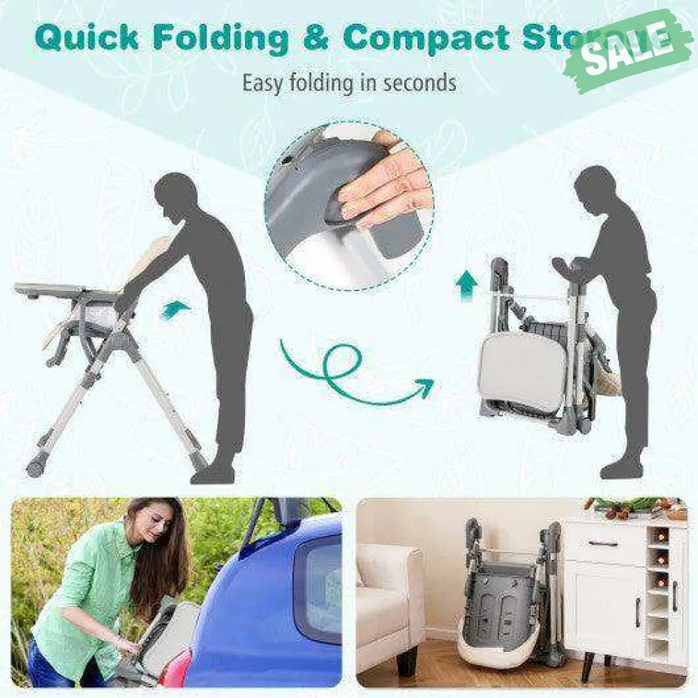 ● Quick Folding and Compact Storage: The foldable structure provides easy folding in seconds and helps store the chair when not in use or transport it for use on the go. The highchair comes pre-assembled and requires no installation ready to use.