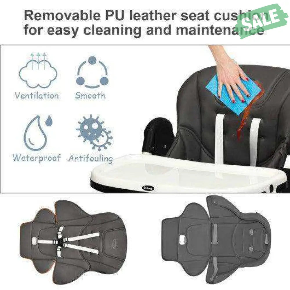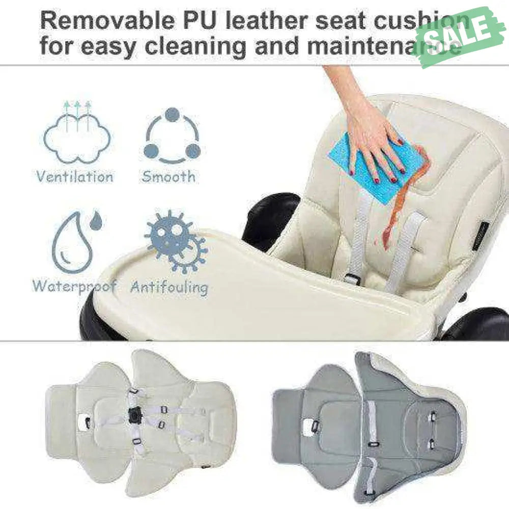 ● Easy to Clean with Detachable Design: Cleanliness has always been a top concern for baby products. Contact with detachable trays and seat cushion our baby high chair is easy to clean and maintain after daily use. The removable PP top tray is also dishwasher safe. And the PU leather cushion is waterproof that you just need to wipe the smudges with a clean cloth. 5-point safety harness ensures security for your little baby. All the corners of our baby highchair are smooth without sharp edges.