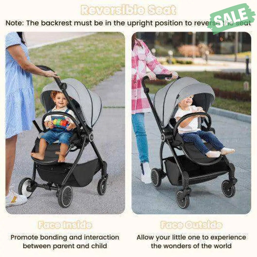 ‚óè Reversible Seat: This baby stroller features a reversible seat that allows you to choose the perfect orientation for your little one. Choose to have your child facing you to encourage interaction and bonding or face the outside world to let them marvel at its wonders. Note: The backrest must be in the upright position to reverse the seat.