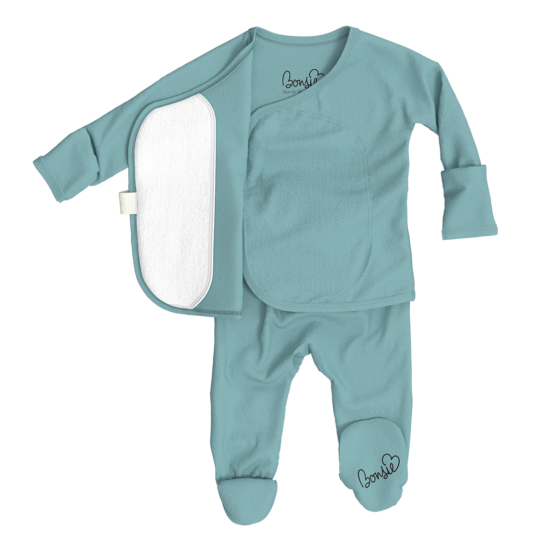 Meet the Bonsie Footie—our bestselling, skin-to-skin superstar designed to make those first days (and nights) easier, cozier, and full of connection. Crafted from our signature ultra-soft, breathable fabric, this one-piece wonder features a wrap-front design that gives you instant access for skin-to-skin bonding—without taking the whole outfit off.