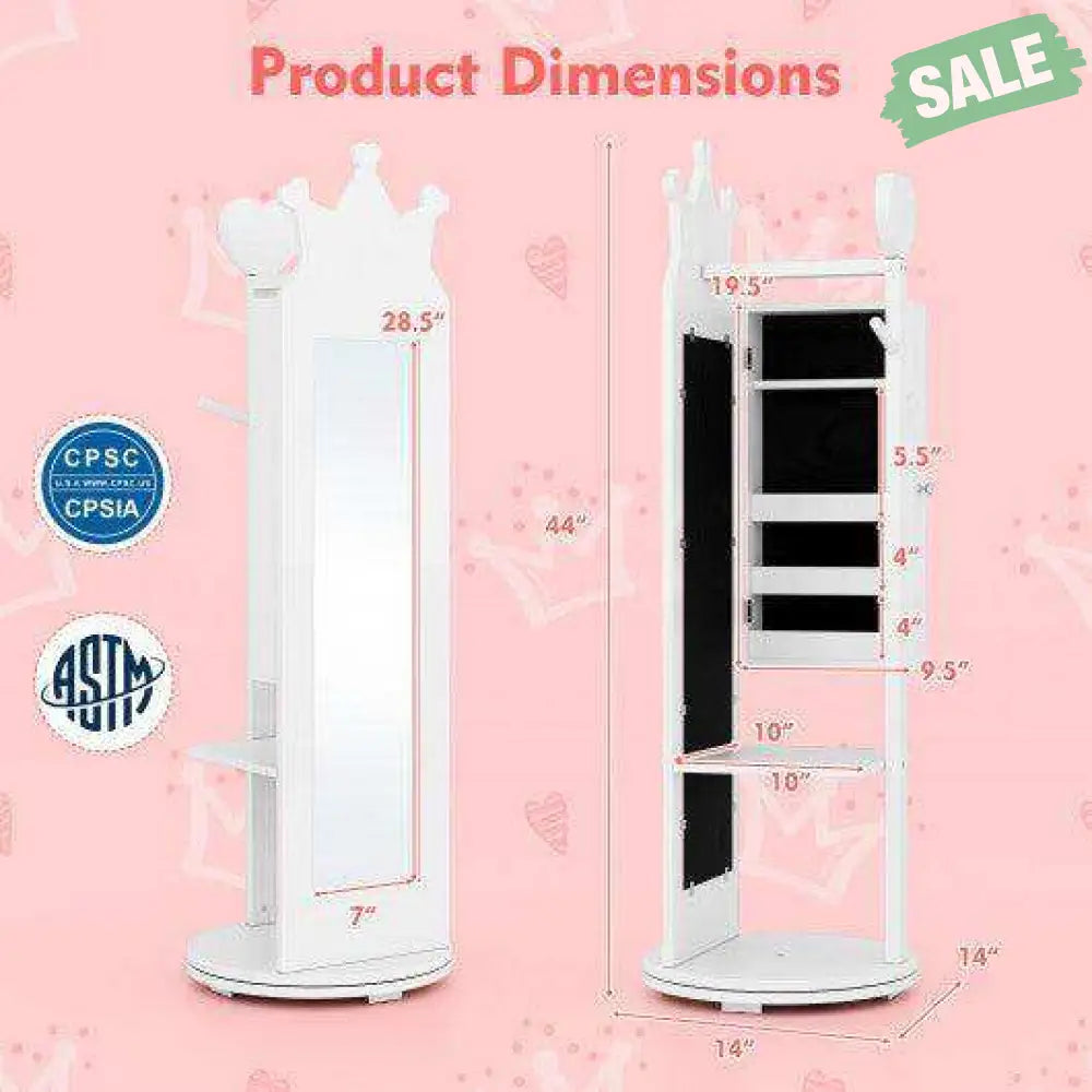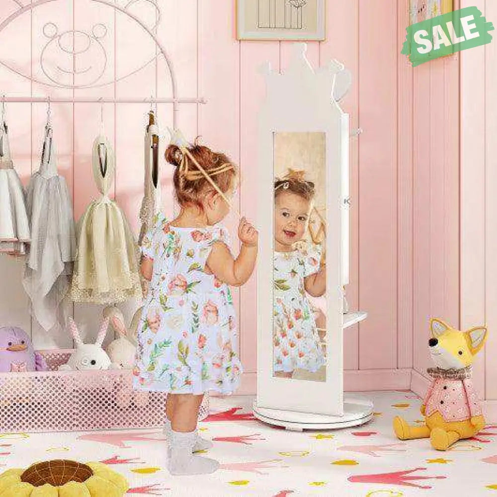 - A Space-Saving Storage Solution: With 4-in-1 multifunctional design this kids jewelry cabinet blends a full-body mirror jewelry storage cloth rack and storage shelves into a single unit. It is a great gift idea for your little on suitable for birthday Christmas children's day and more.