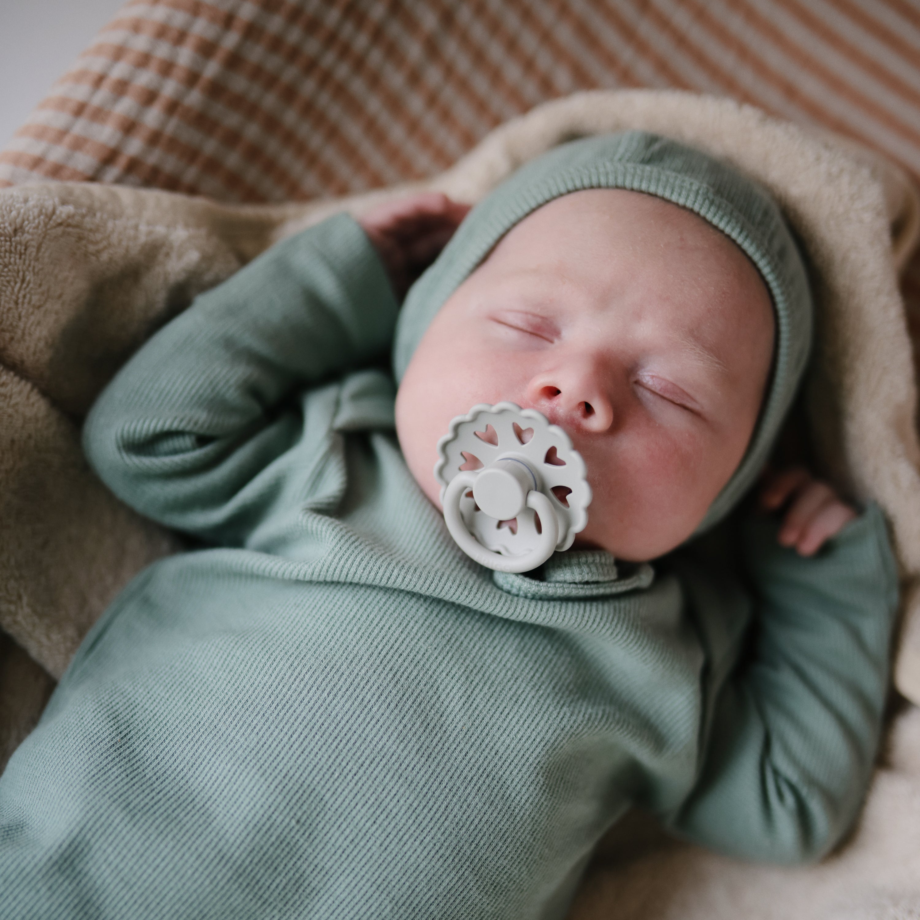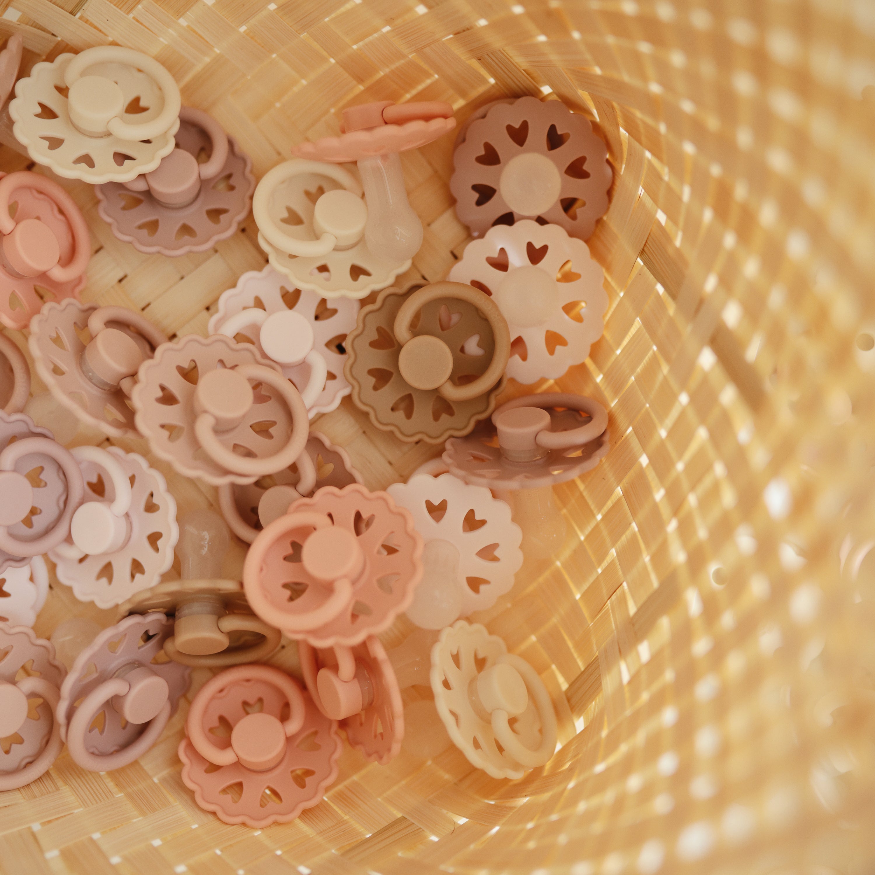 FRIGG Fairytale silicone pacifiers are thoughtfully designed and made in Denmark for your baby's comfort and safety with an improved SilkySoft™ medical grade silicone nipple and patented Click-Lock® system. The outward curve keeps the pacifier off baby's delicate skin while air holes and a security handle give parents extra peace of mind. The beautiful colors and design draw inspiration from timeless fairy tales by Danish author Hans Christian Andersen.