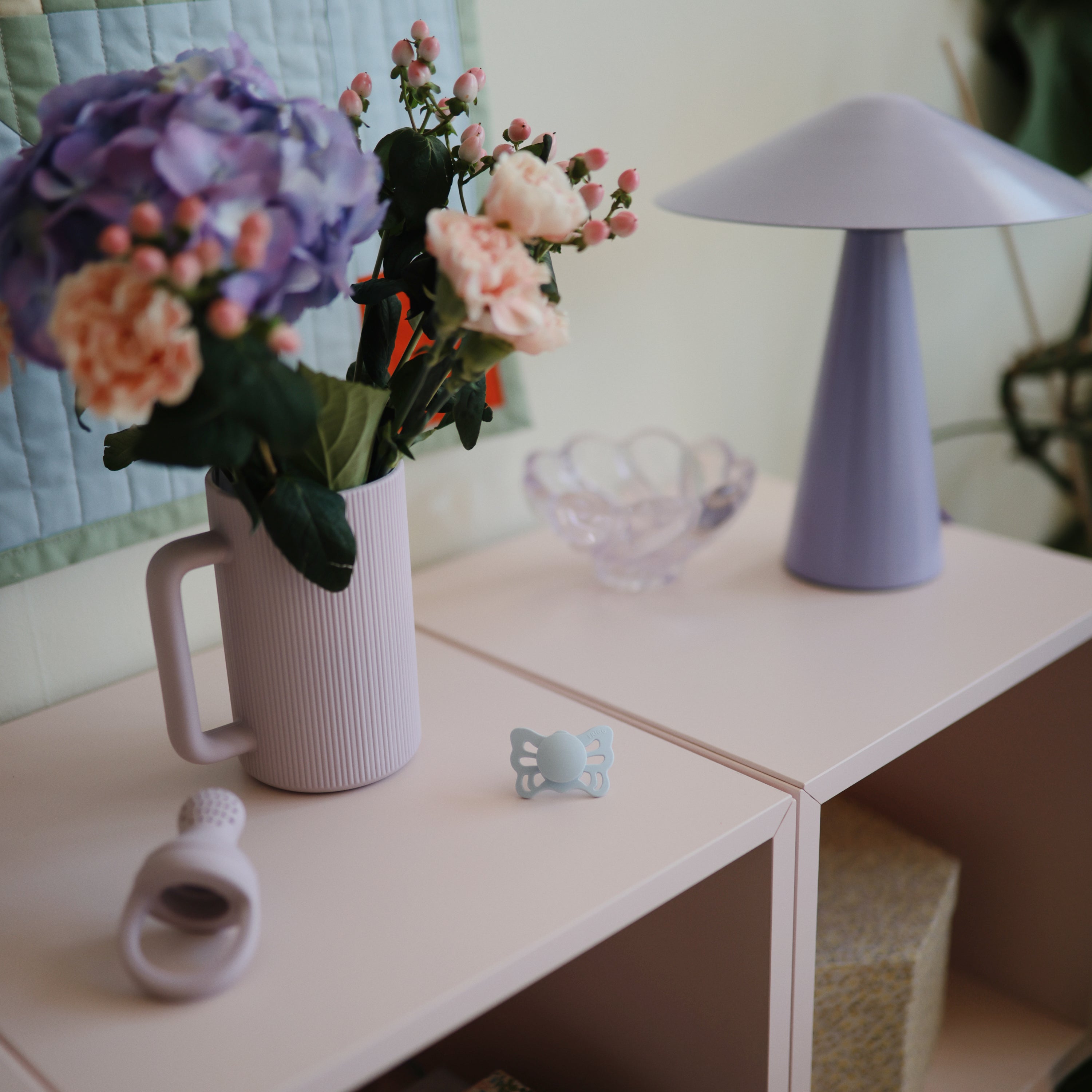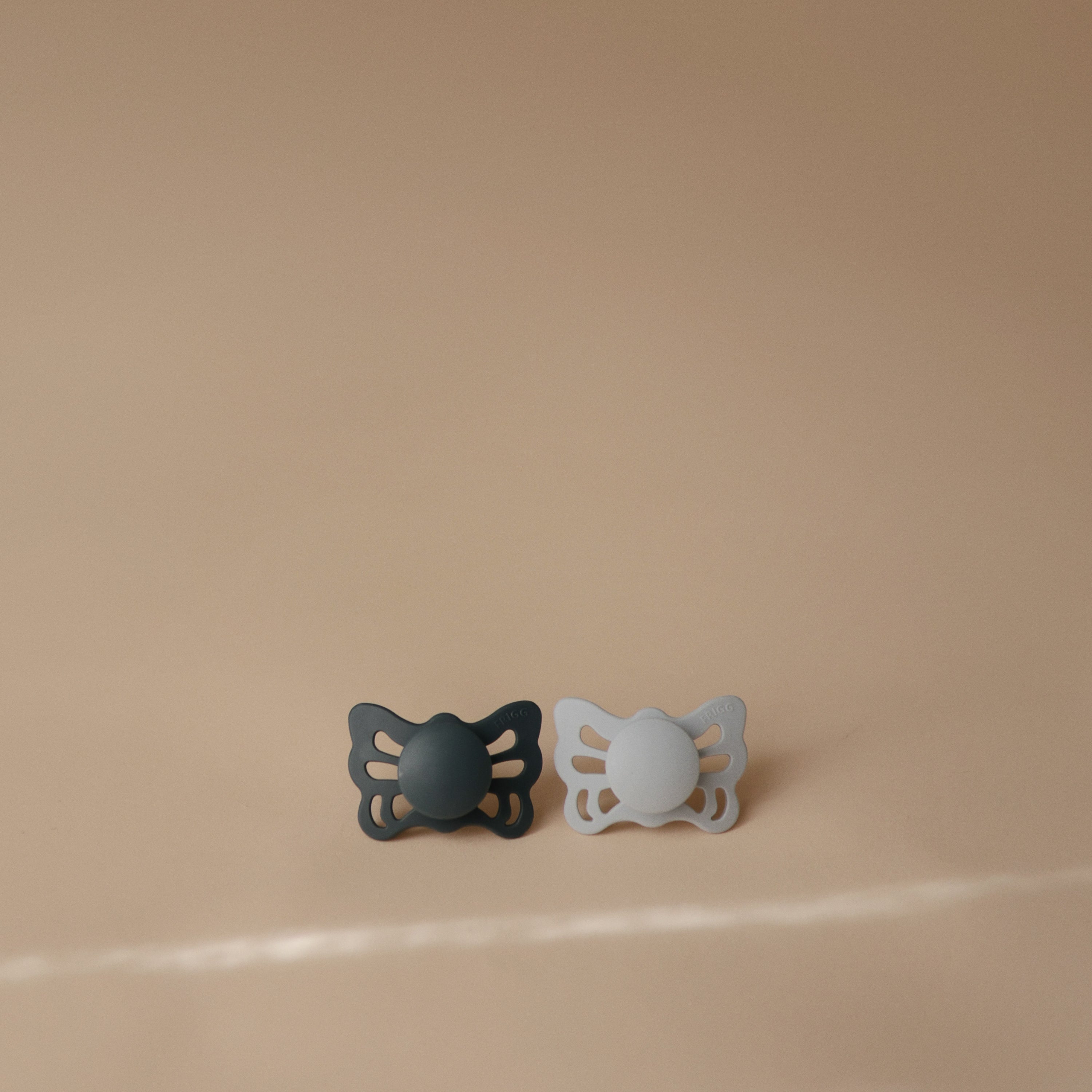 FRIGG Butterfly silicone pacifiers are thoughtfully designed and made in Denmark for your baby's comfort and safety with an improved SilkySoft™ medical grade silicone nipple. Inspired by the transformation of a caterpillar into a butterfly, the shield mimics butterfly wings and has large air holes for added safety. Designed with an anatomical nipple that mirrors the natural shape of your baby’s mouth, reducing pressure on the palate and gums to support proper oral and jaw development.