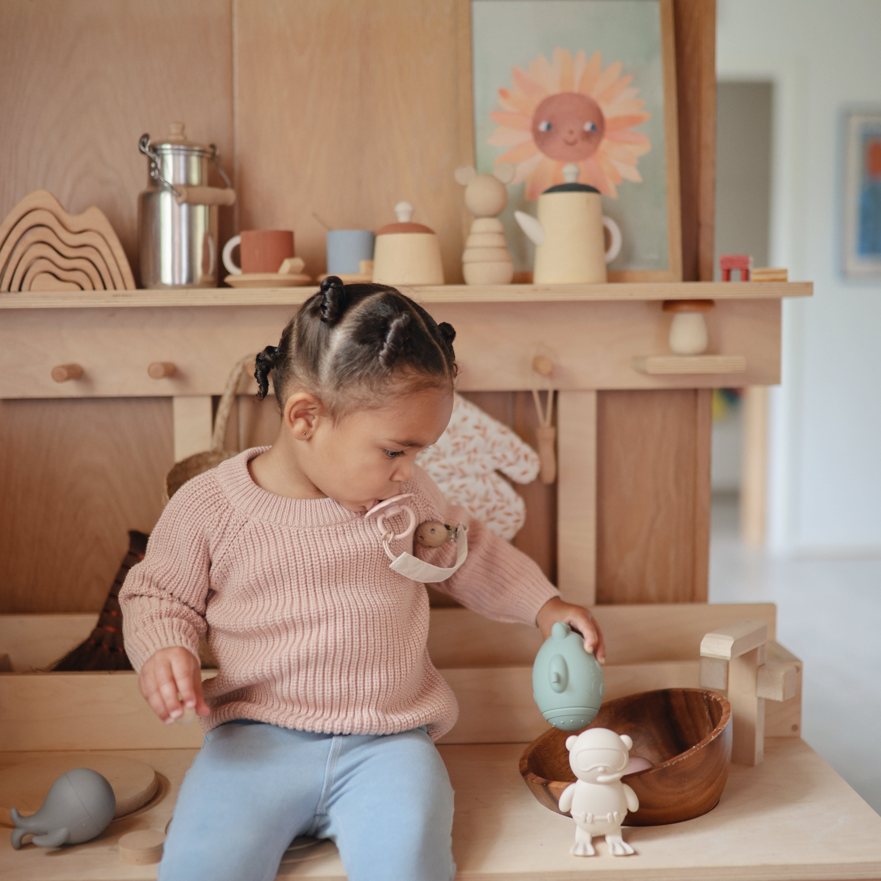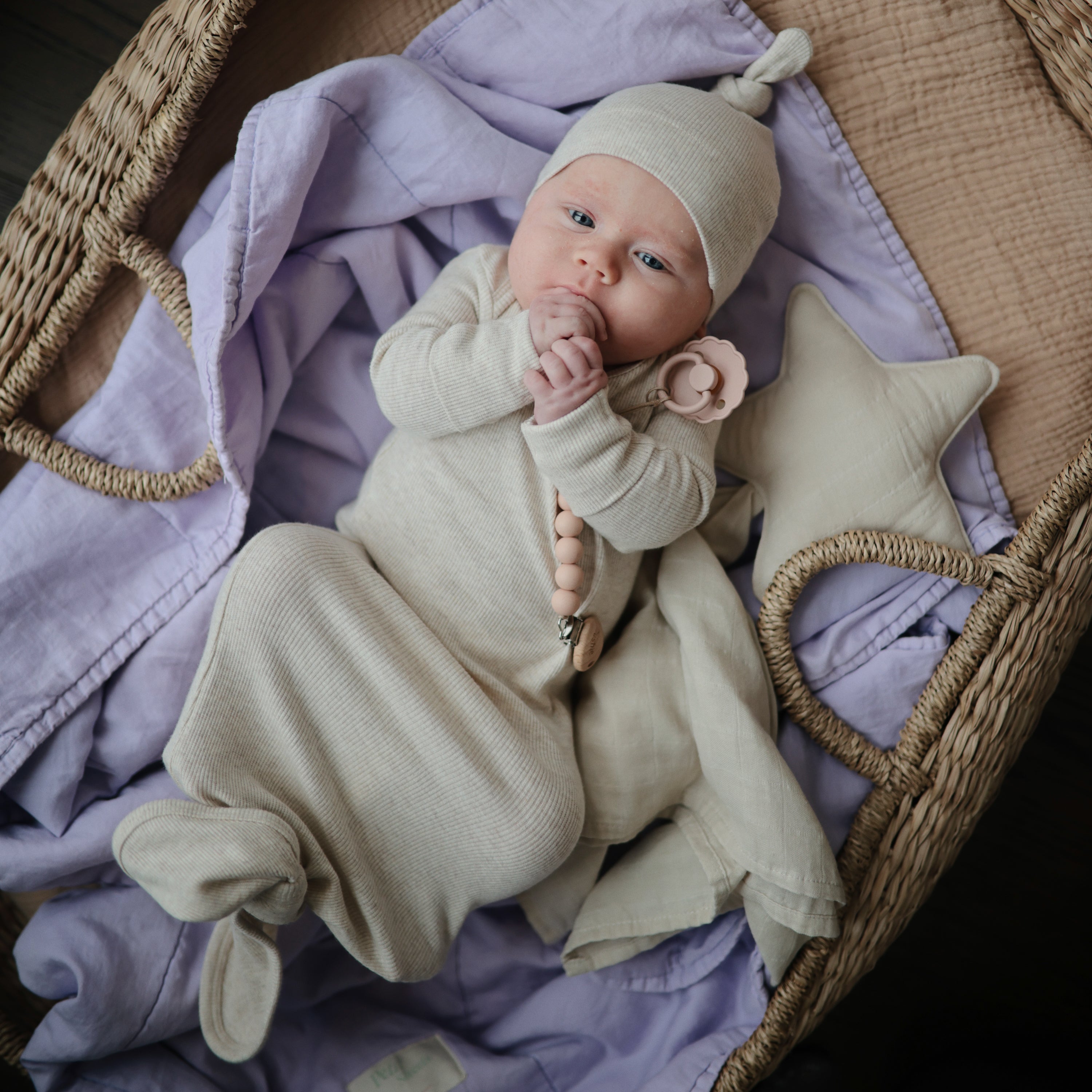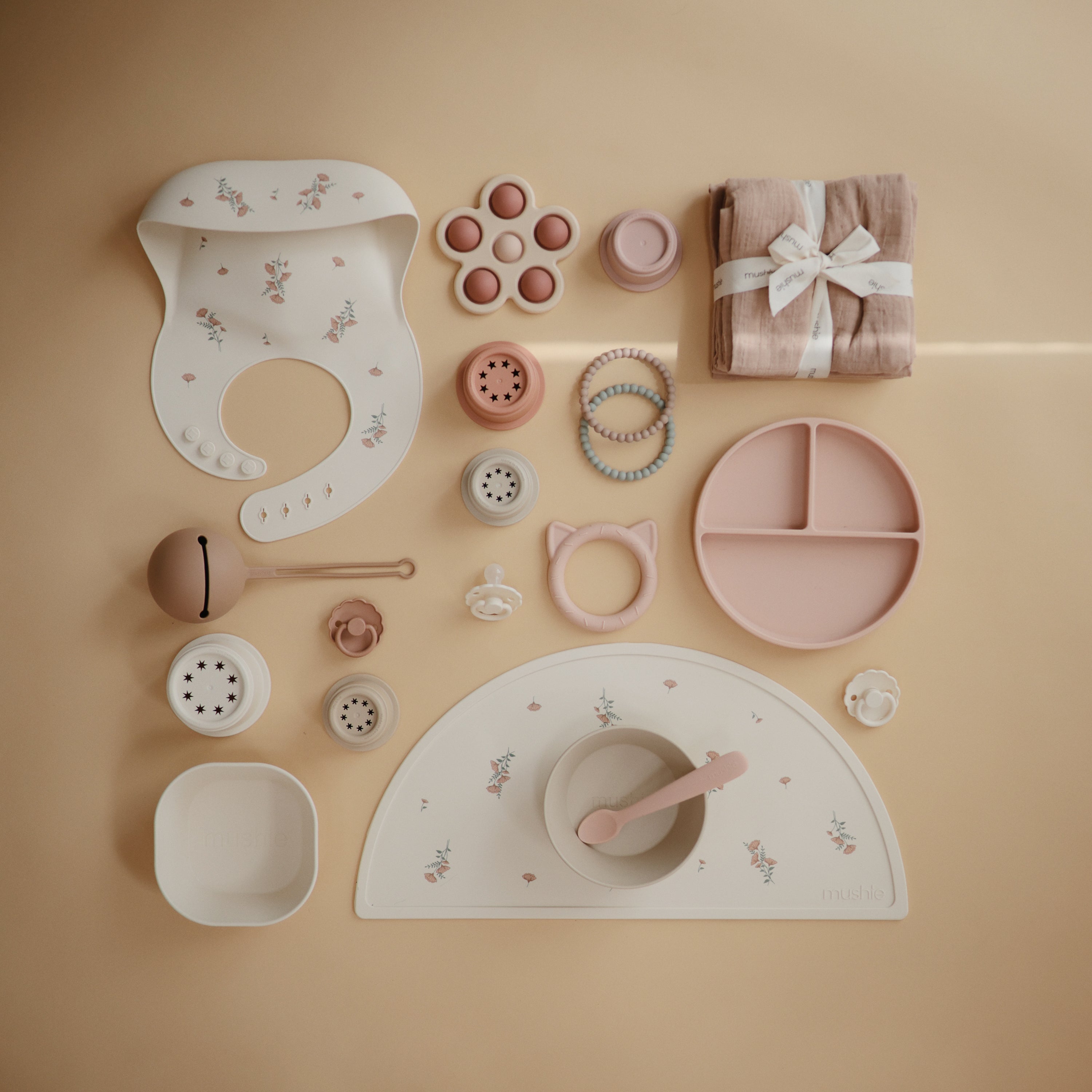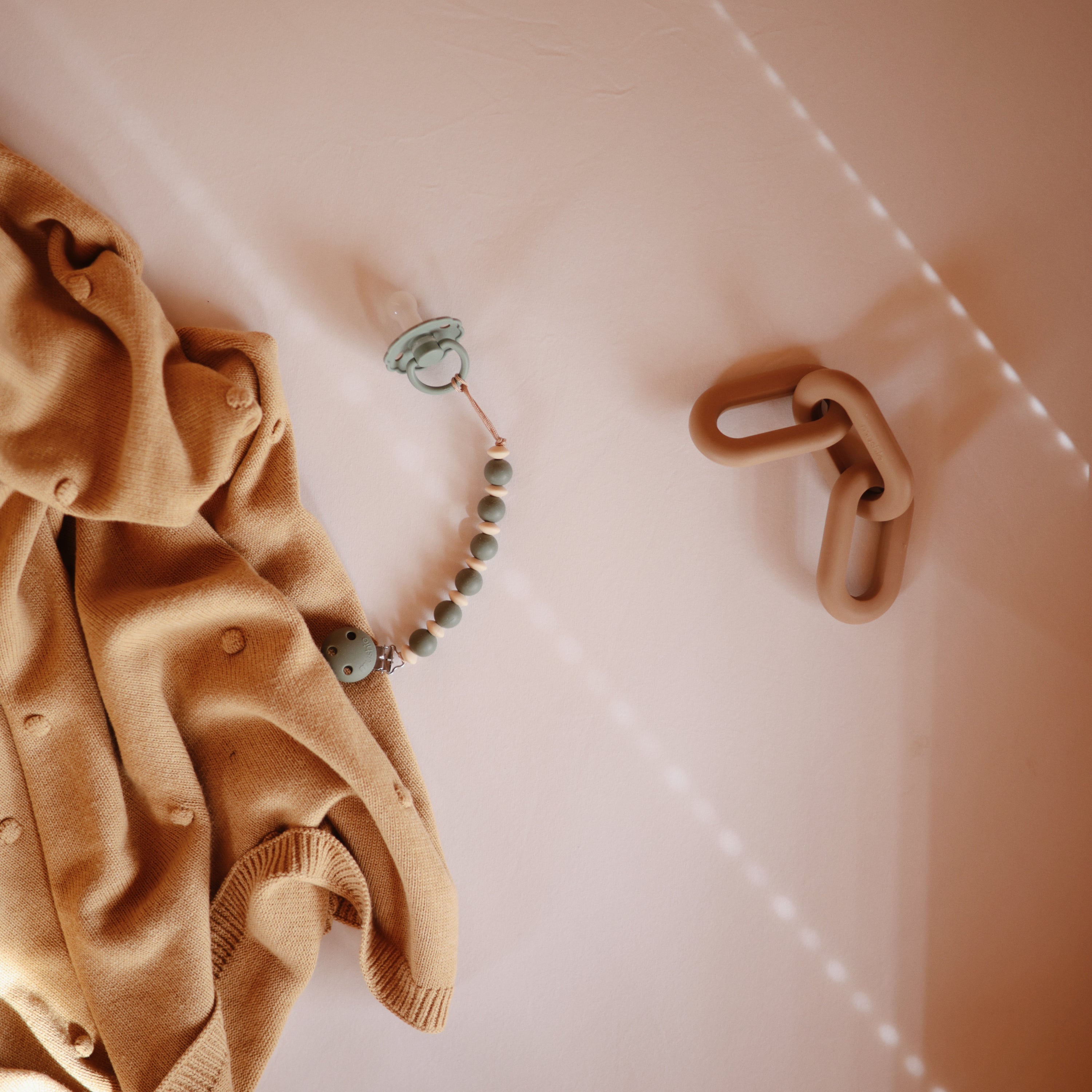 The FRIGG line of Daisy silicone pacifiers are thoughtfully designed and made in Denmark for your baby's comfort and safety with an improved SilkySoft™ medical grade silicone nipple and patented Click-Lock® system. The outward curve keeps the pacifier off baby's delicate skin, while air holes and a security handle give parents extra peace of mind. The charming daisy-shaped shield adds a sweet, playful touch to your baby’s everyday essentials.