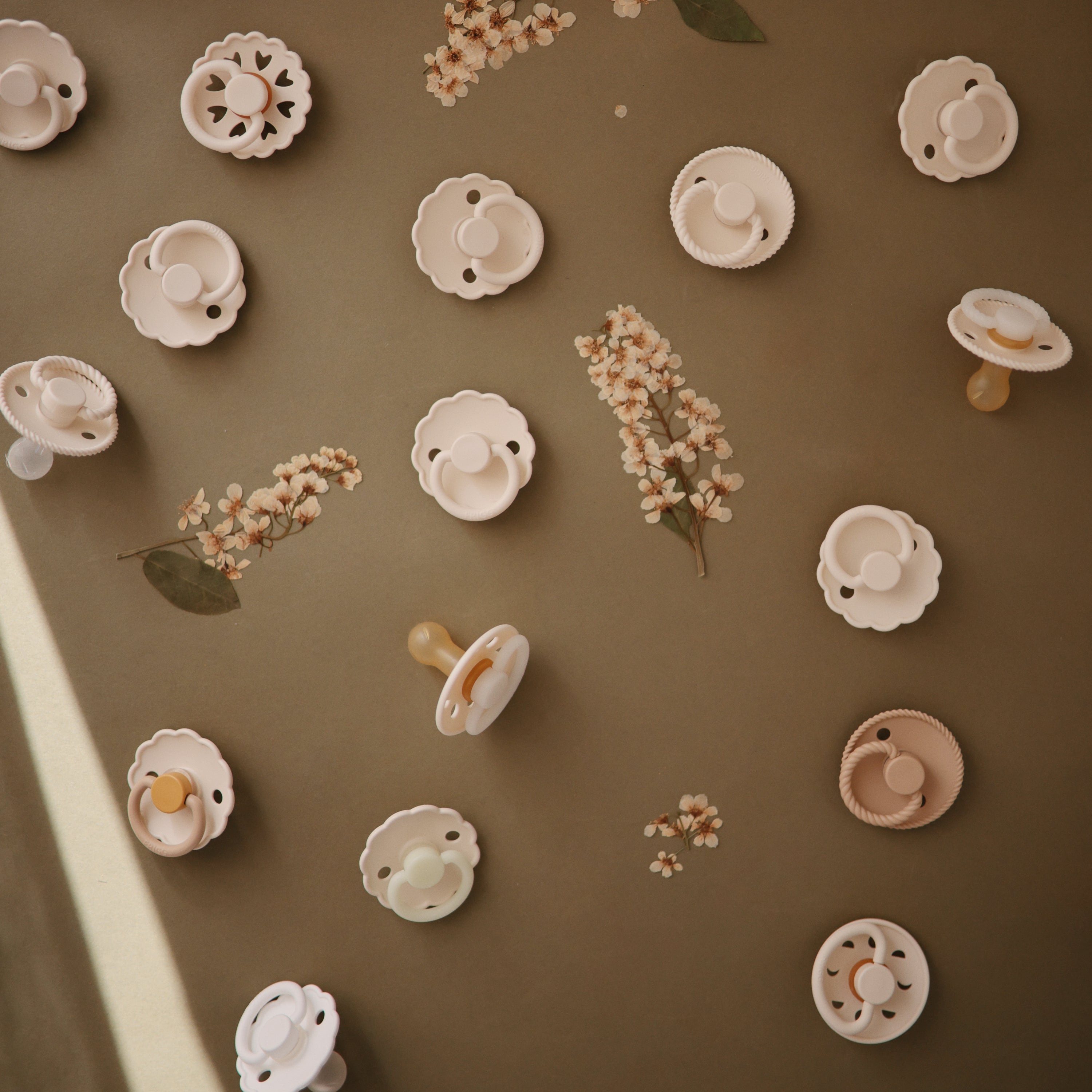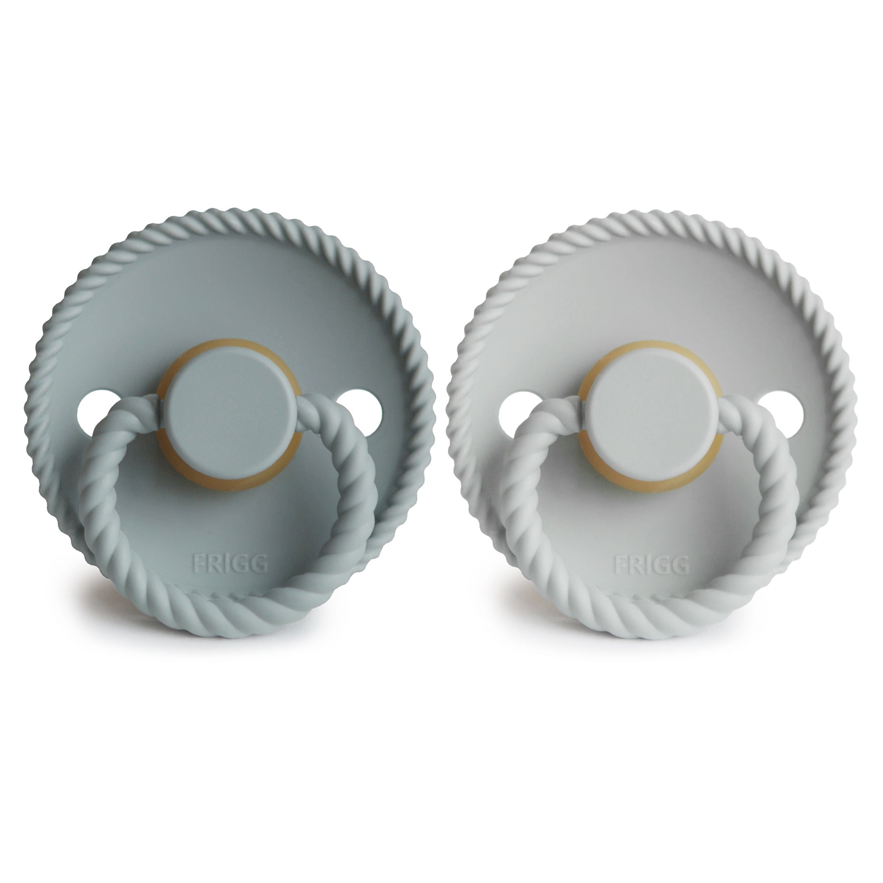 The FRIGG line of Rope rubber pacifiers are thoughtfully designed and made in Denmark for your baby's comfort and safety with a natural rubber latex nipple and patented Click-Lock® system. The outward curve keeps the pacifier off baby's delicate skin, while air holes and a security handle give parents extra peace of mind. Available in a range of soft colors with entwined rope detailing, FRIGG Rope pacifiers make a beautiful addition to your collection of baby essentials.