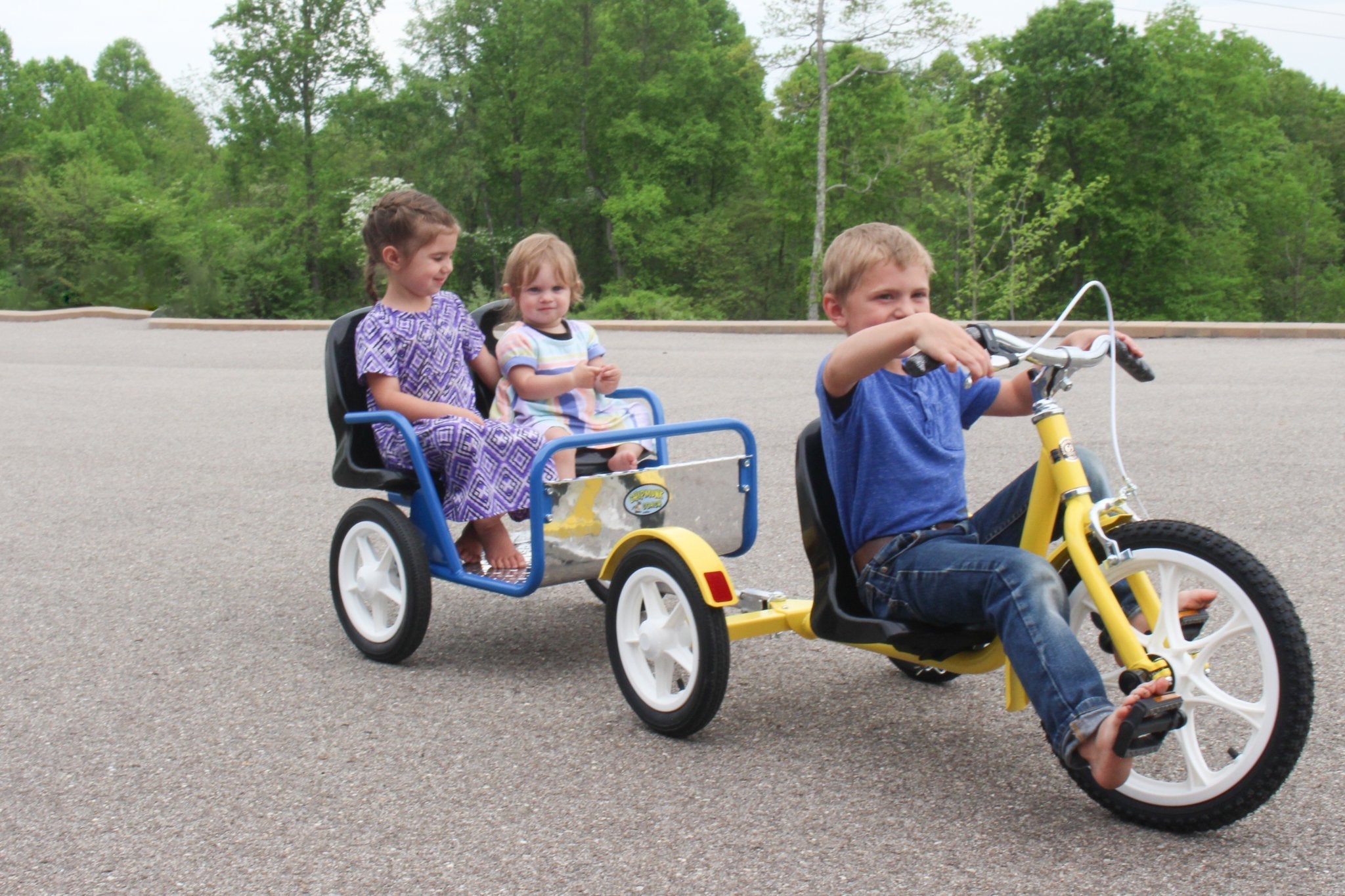 Enjoy the ride of your life with the New Groffdale Chopper Trike. The trike is designed and crafted by Amish folks in Lancaster County, Pennsylvania. It is designed for children from approximately 3-12 years old. The Groffdale Chopper Trike features 7.5" of seat adjustment (no tools required), a low profile to prevent tip-overs, a hand brake for your child's safety, and a powder-coated paint finish for maximum durability. This sturdy, Amish-made trike will last for a life-time of fun and will grow with your kids with it's easy seat adjustability. The front wheel measures 16" across, and the rear wheels are 12". The overall length of the chopper is 43.5" and the width is 23.5". Assembly required.