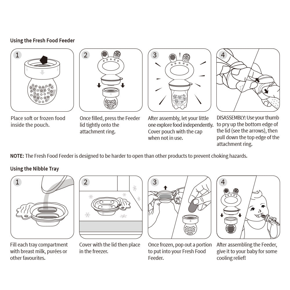 - Freeze breast milk or other favorites in the Nibble Tray to soothe tender gums.