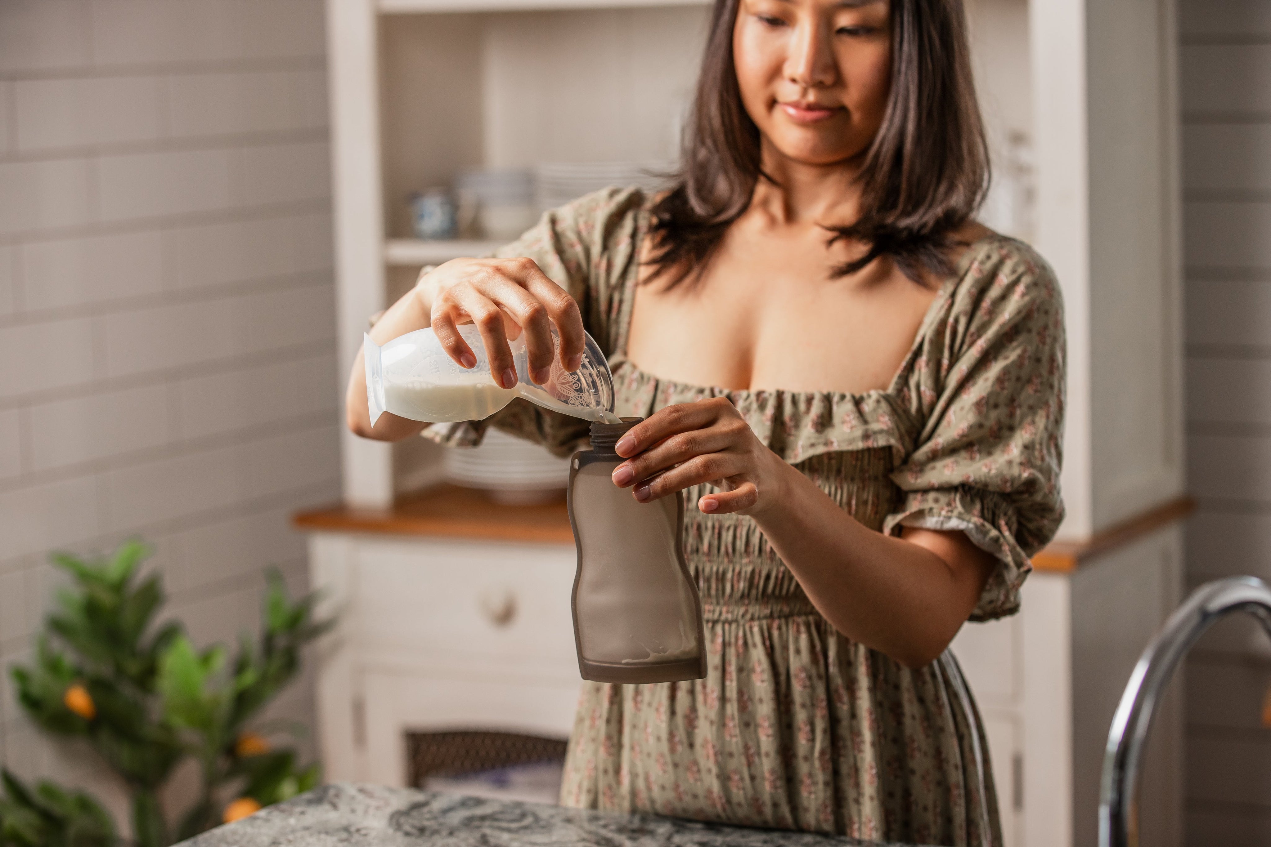 Tips: Encourage let-down by placing a warm flannel on top of your breast and massaging gently. While your child is feeding, attach your Haakaa pump to the other breast to catch precious milk that would otherwise be lost in a nursing pad.