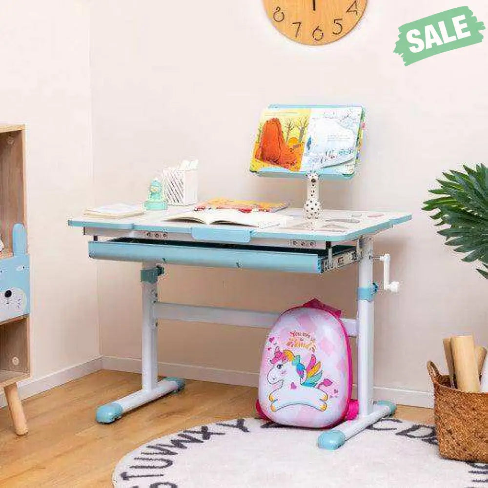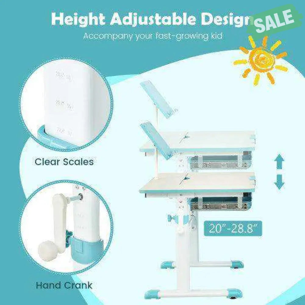 ● Height-adjustable Kids Desk: With height-adjustable design this study desk will accompany your fast-growing kid. By rotating the hand crank you can smoothly raise or lower the desktop (20"-28.8"). You can freely adjust its height to fit kids of different growth stages.