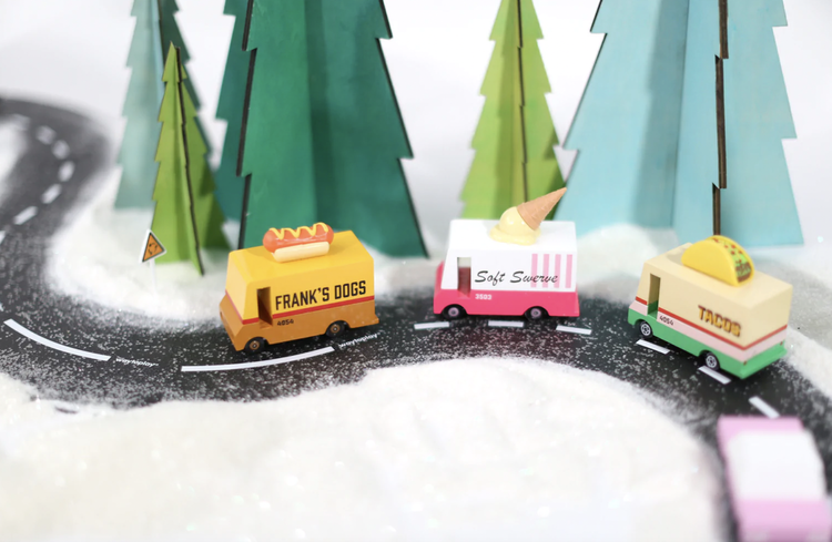 Nothing says NYC like a hot dog stand. As New Yorkers, we must pay tribute to the hot dog – it's the quintessential New York street food. Our hot dog truck is a minimalist, design-focused, vehicular interpretation of the hot dog stand with a mustard-yellow top and a perfectly toasted base. Don't worry, we skipped the dirty water.