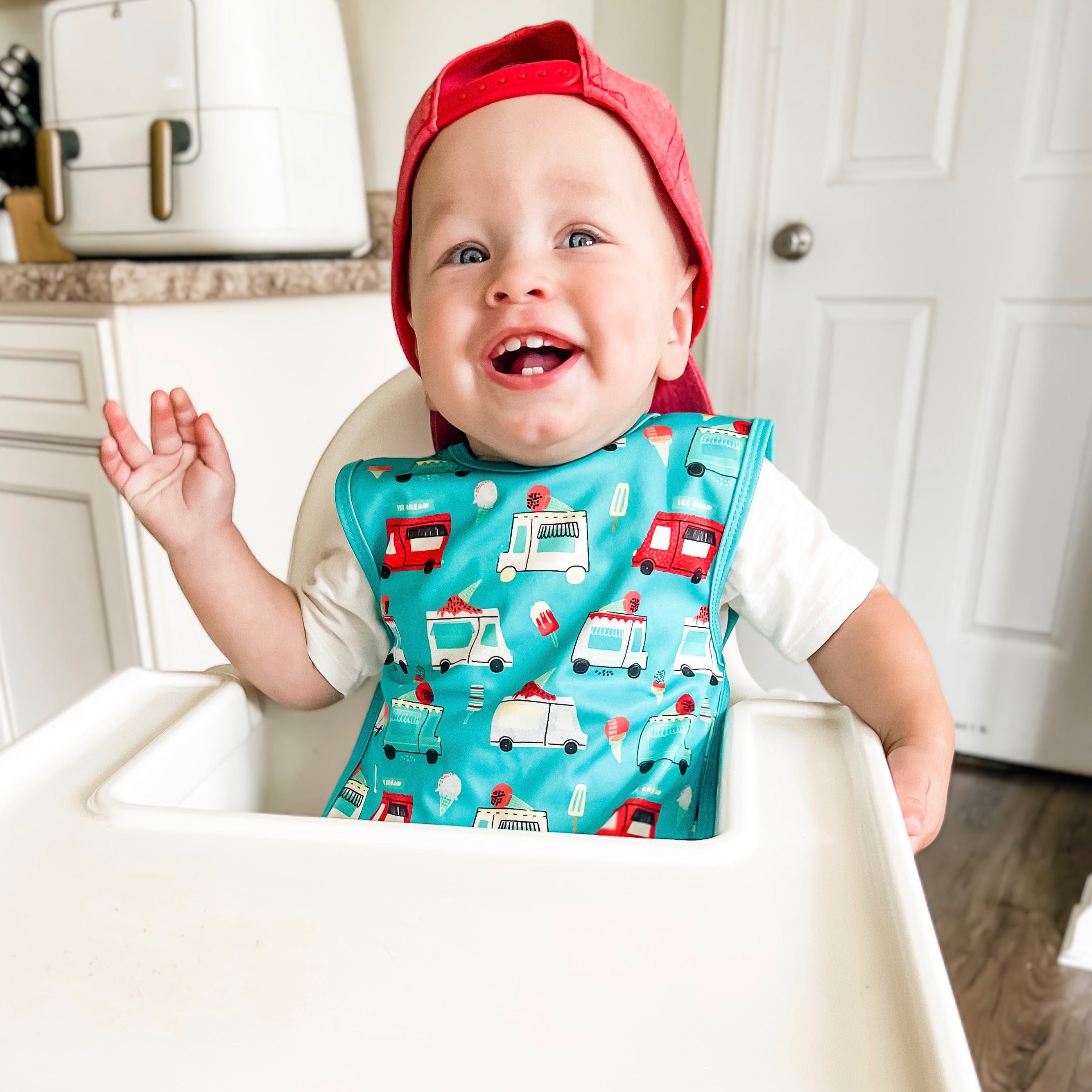 This best-selling “Bapron”, also known as a bib-apron hybrid, full-coverage bib, smock, or apron, is designed for comfort and safety. Because of their comfortable, secure-fitting horizontal ties and their full-coverage design, Baprons are the perfect companion for mealtime, art, and sensory play!