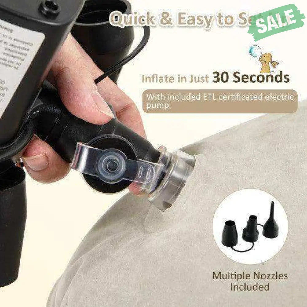 ‚óè Quick Inflation and Deflation: With the included electric pump and 3 interconnected nozzles this kids air mattress can be fully inflated in 30 seconds. The leak-proof valve safe plug 120V and ETL and CE certification ensure worry-free operation. Note: It's recommended to inflate about 80% to 90% full especially on hot days.