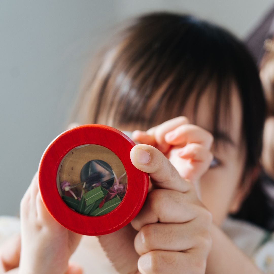 View the world through an artistic lens with the wooden Kaleidoscope! Little ones can put their favorite objects inside and experience a swirling explosion of brilliant colors. They can also explore objects around them and see what they discover through the lens. As educational as it is entertaining, this kaleidoscope fosters creativity, imaginative thinking and curiosity.