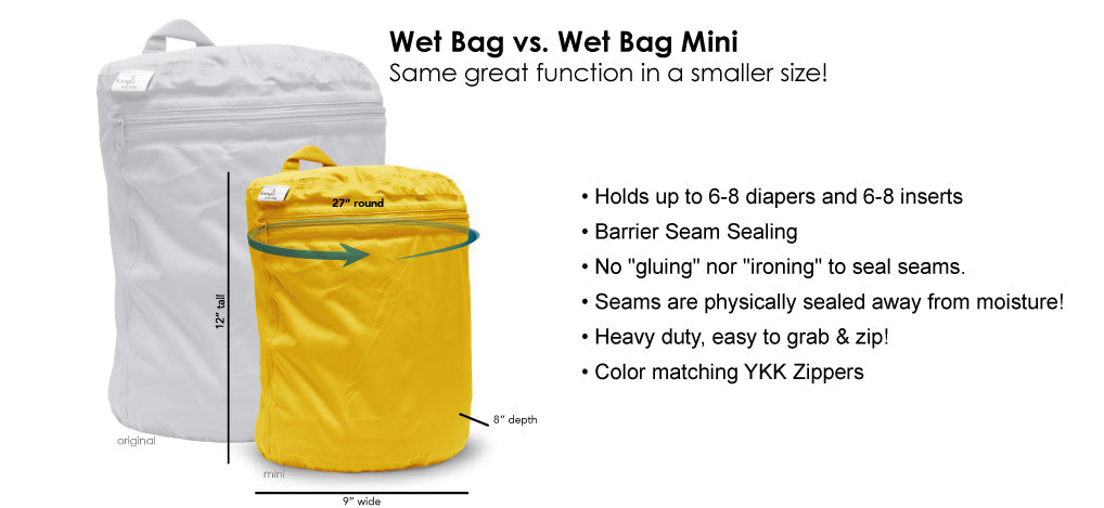 Introducing Fluff Wet Bag Mini - A classic, simple, white color. The Kanga Care Wet Bag Mini (and Regular Wet Bag) is your new best friend!It is HALF MOON shaped to allow more volume. This design is EXCLUSIVE to Kanga Care. This wet bag will hold up to 6 to 8 diapers and inserts. The Kanga Care Wet Bags have color matching, heavy duty zippers that are easy to grab. The zipper is placed on the front so the top of the bag functions as a lid. There is a strap on top that can be opened by an industrial strength snap so that the bag can be attached to a stroller handle, door knob, or other ideal hanging place. To clean, machine wash with your diapers or other soiled items (turn inside out). Tumble dry low (turn bag right-side-out) or hang dry. Visit www.kangacare.com for further information. Kanga Care uses TPU laminate in waterproof products. Our TPU laminate is heat bonded to our fabric using an eco-glue which is solvent-free and ground water safe. This process is low in toxicity and is better for the natural environment than traditional PUL.