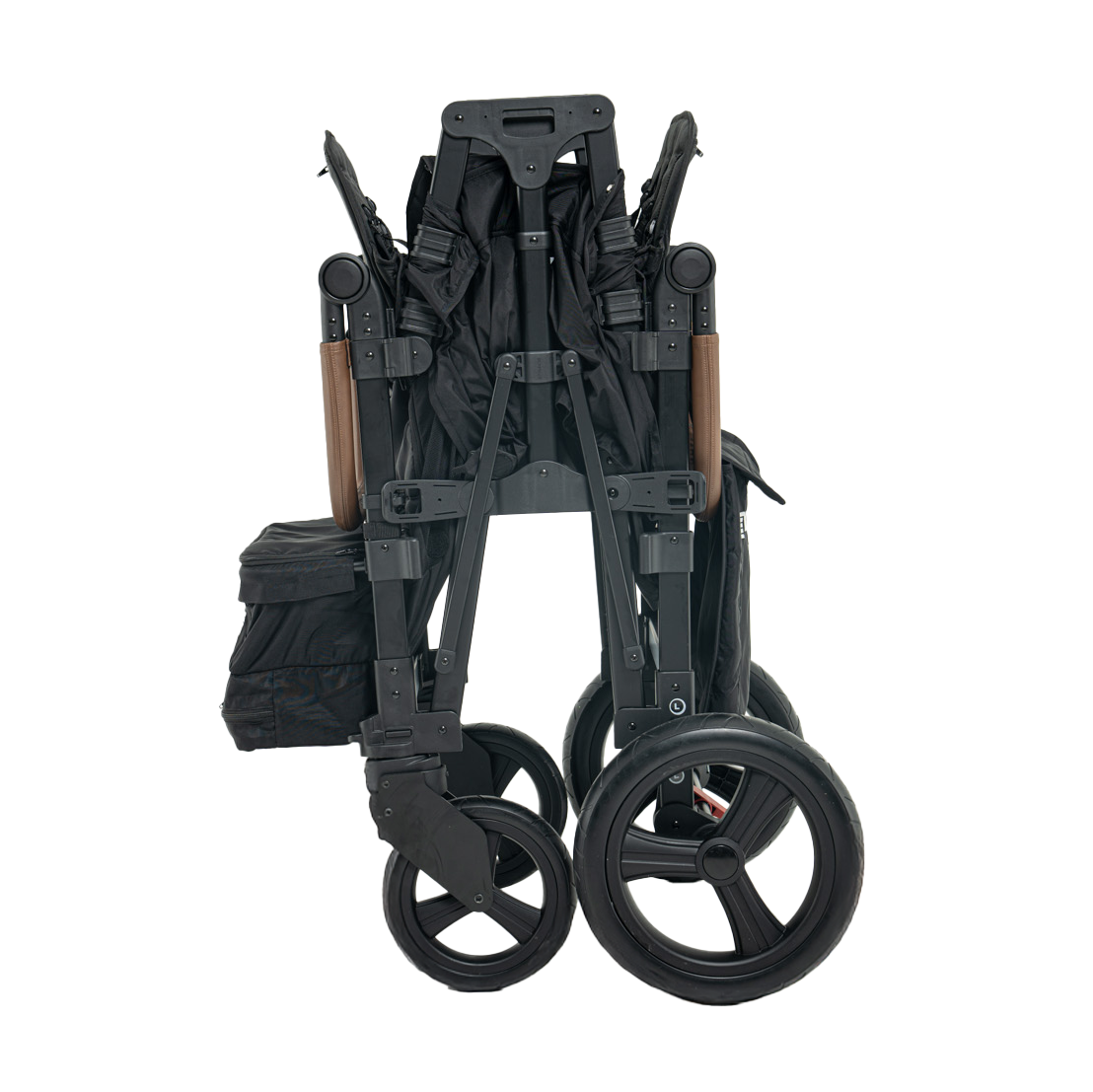 The most comfortable luxury stroller wagon just got an upgrade—fully loaded with all-terrain rubber wheels, a convenient snack tray, and tons of storage space, plus smart details for a smooth, fun ride.