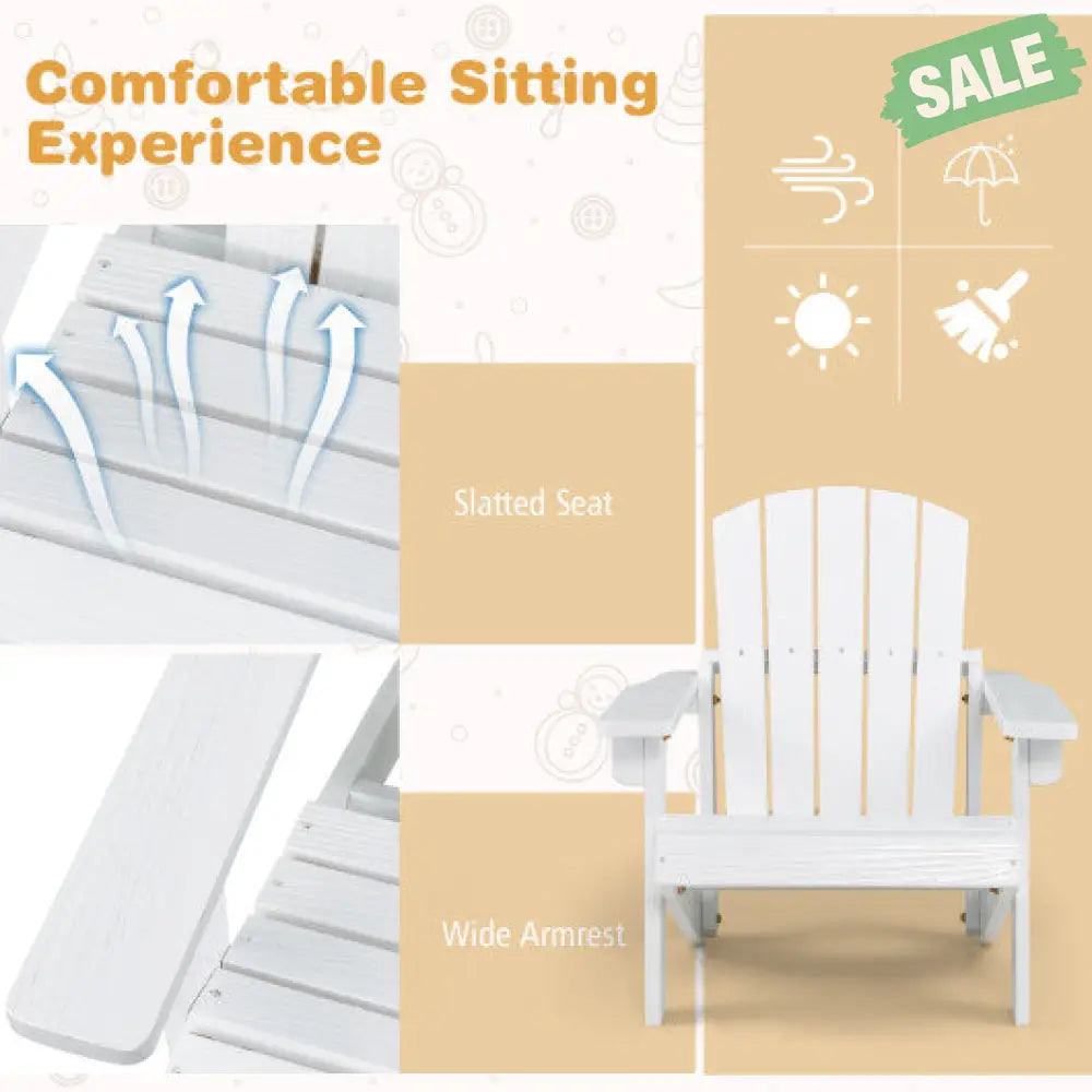 ‚óè High-quality Fir Wood: Made from 100% natural fir wood this adirondack chair is highly resistant to heat and deformation with long service life. In addition coated with a waterproof painting which not only increases the weather resistance but the beautiful patterns on the chairs will remain for a long time.