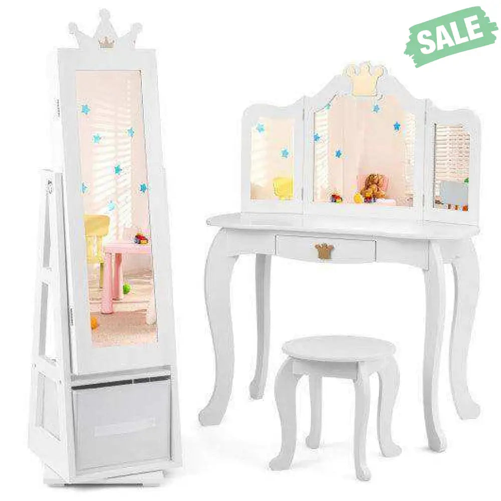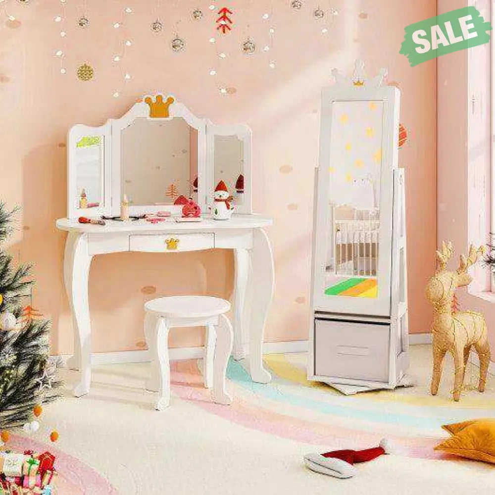‚óè A Space-Saving Storage Solution: With 3-in-1 multifunctional design this kids jewelry cabinet blends a full-body mirror jewelry storage and storage shelves into a single unit. It's an excellent choice for compact spaces ensuring that you utilize every square inch of your child's room effectively.
